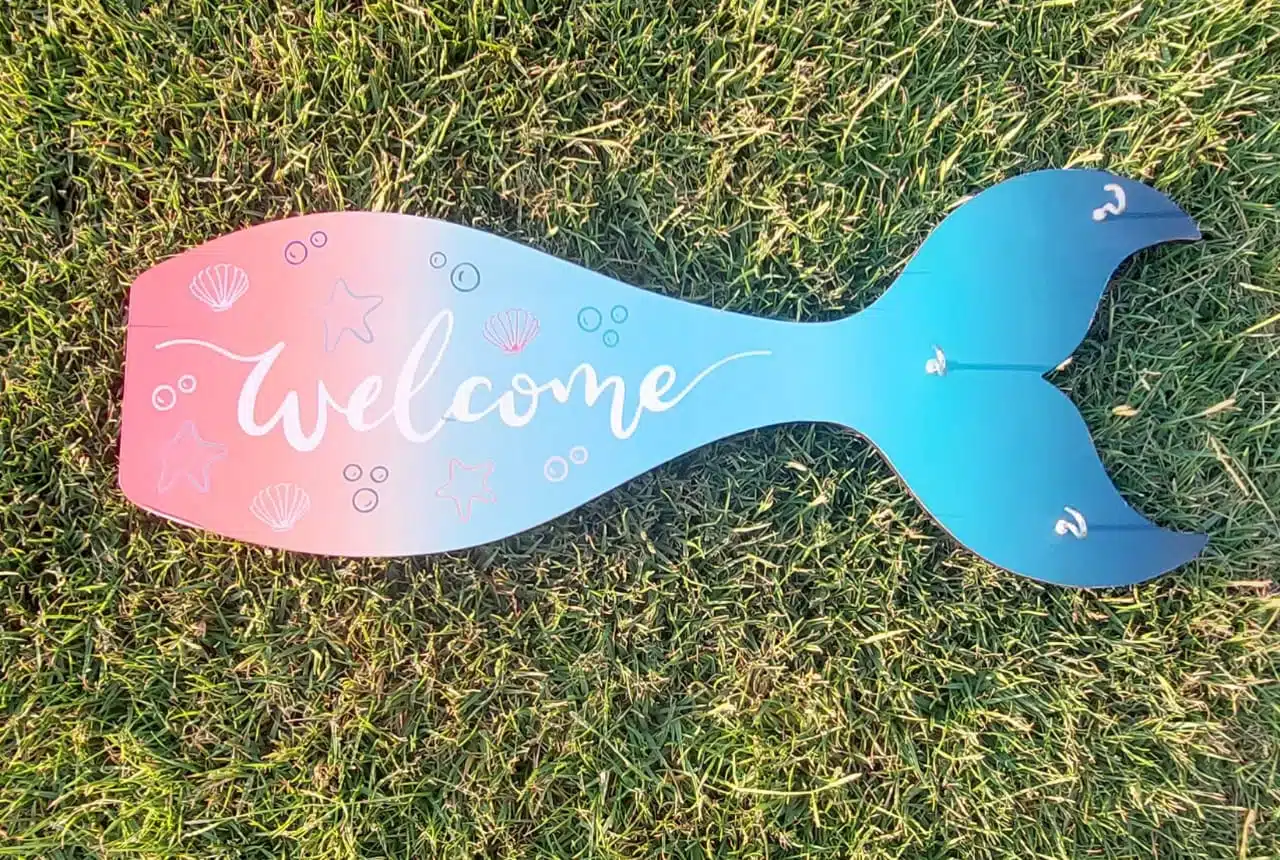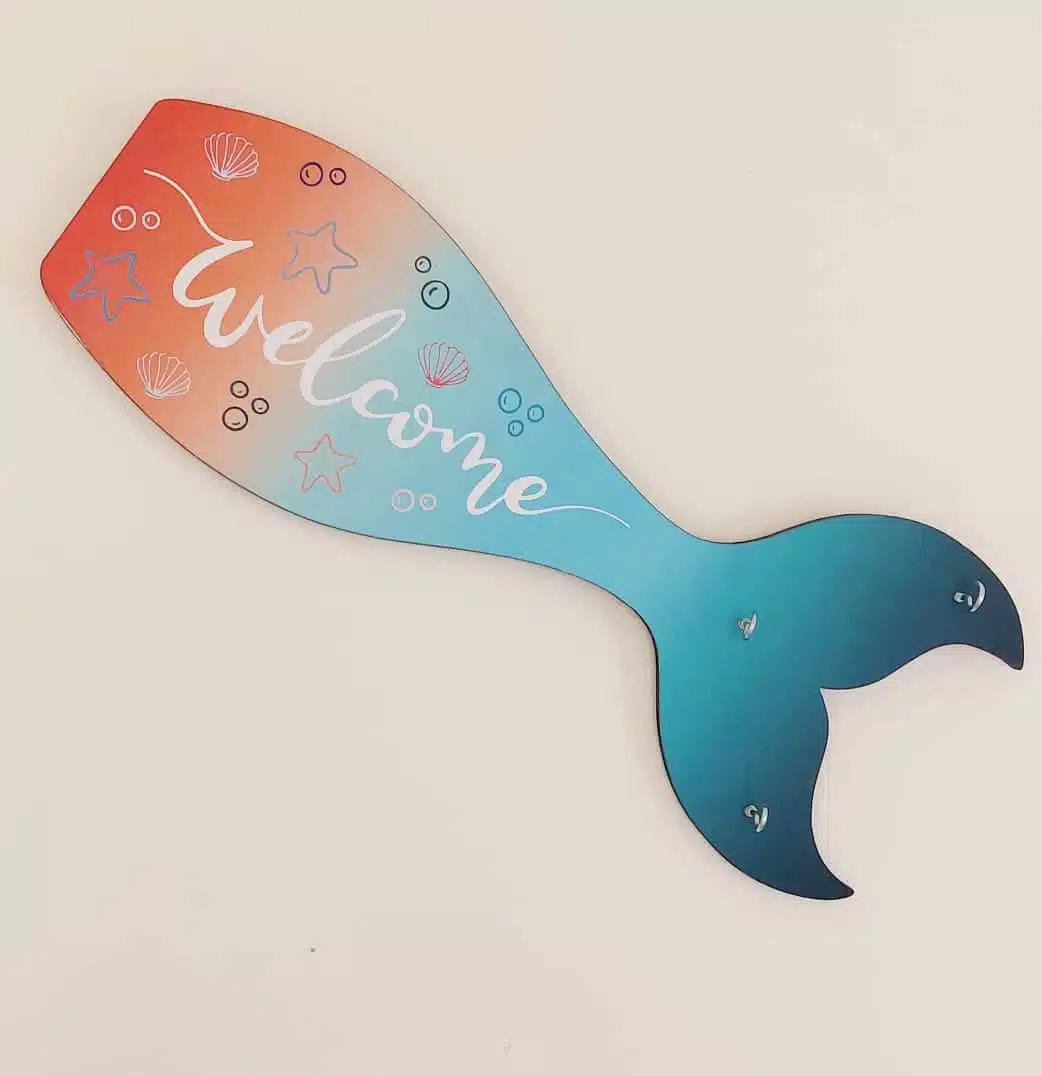 Key Wooden Hanger Size A4, Mermaid shape with caption welcome.