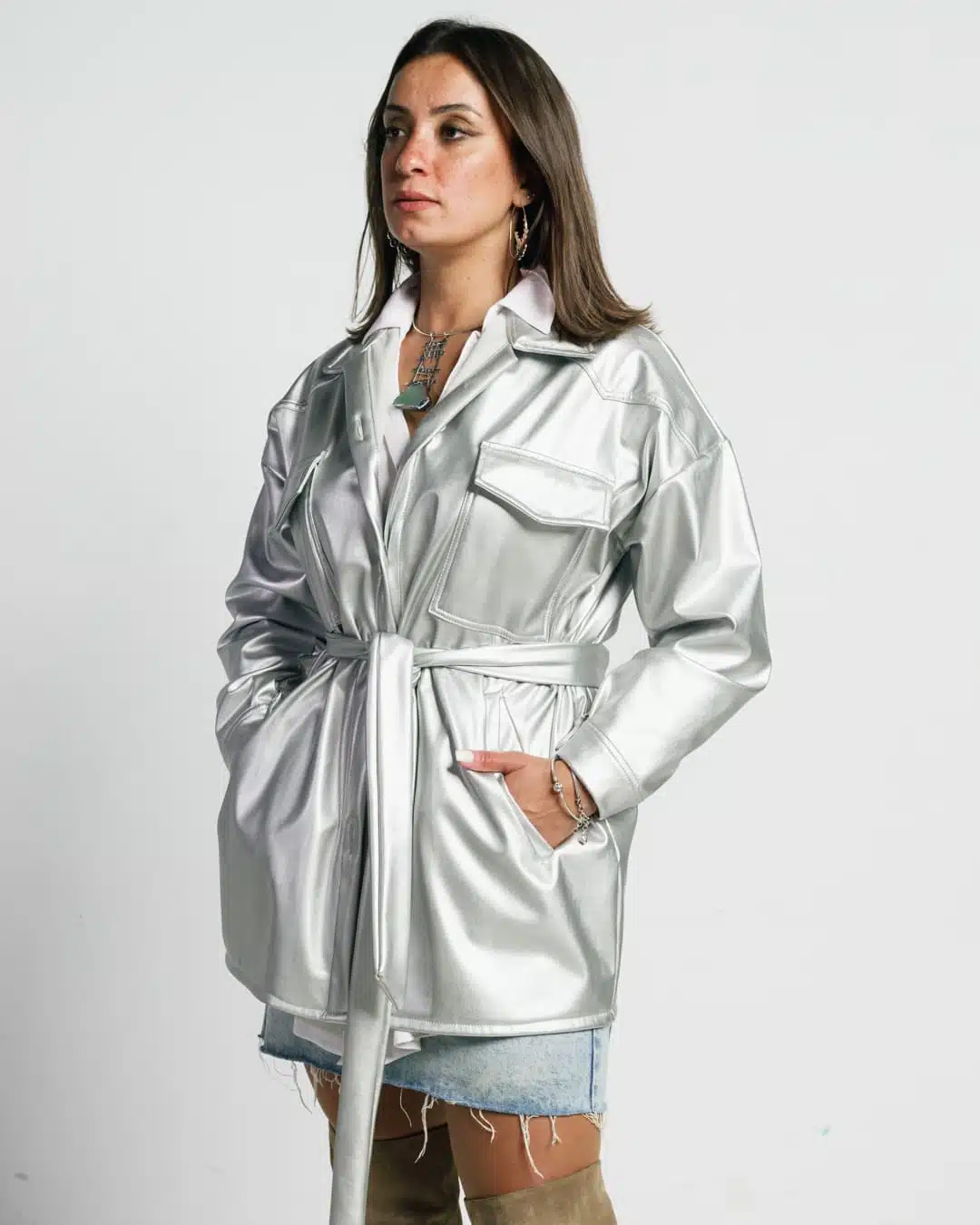 Metallic silver leather jacket