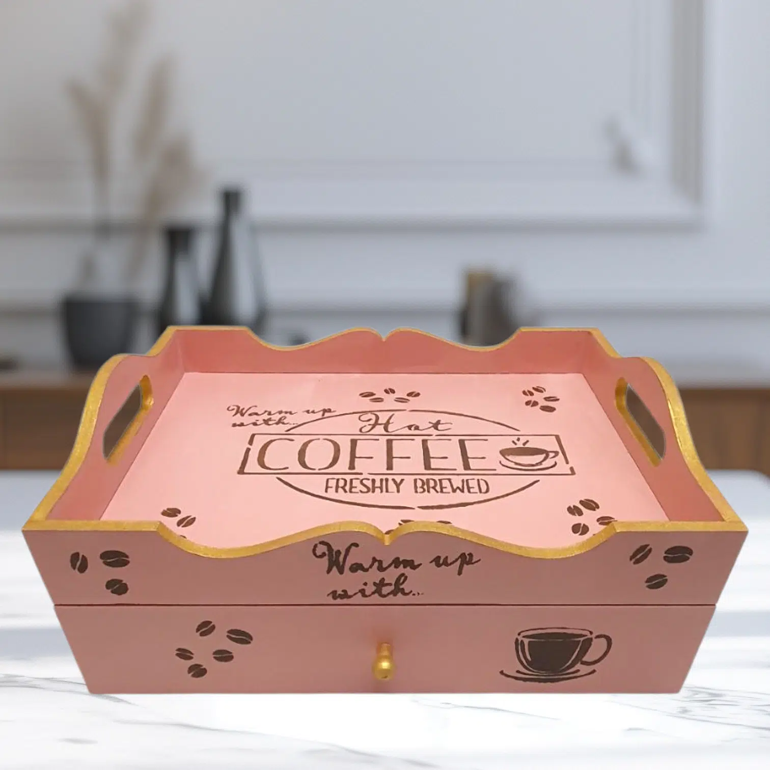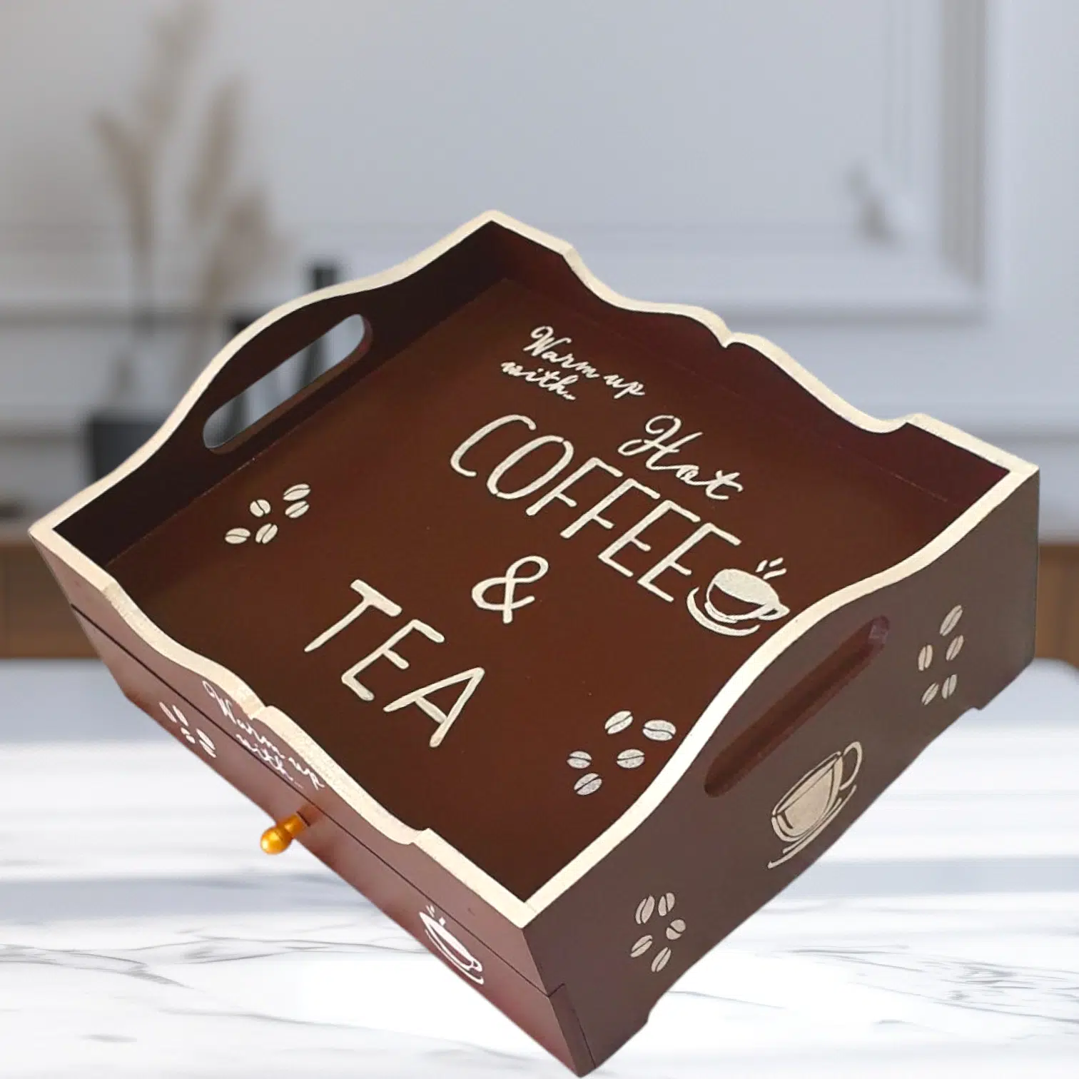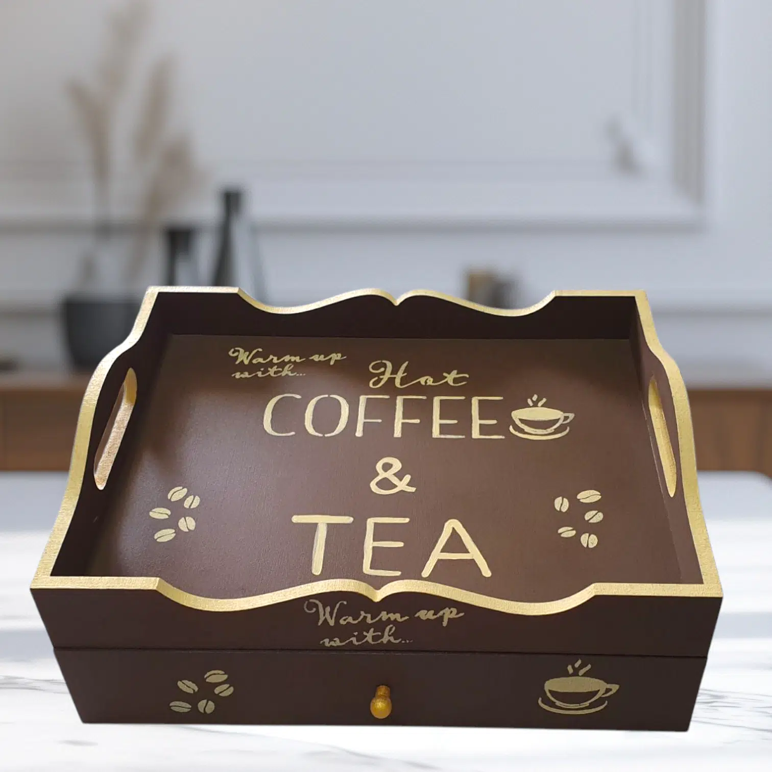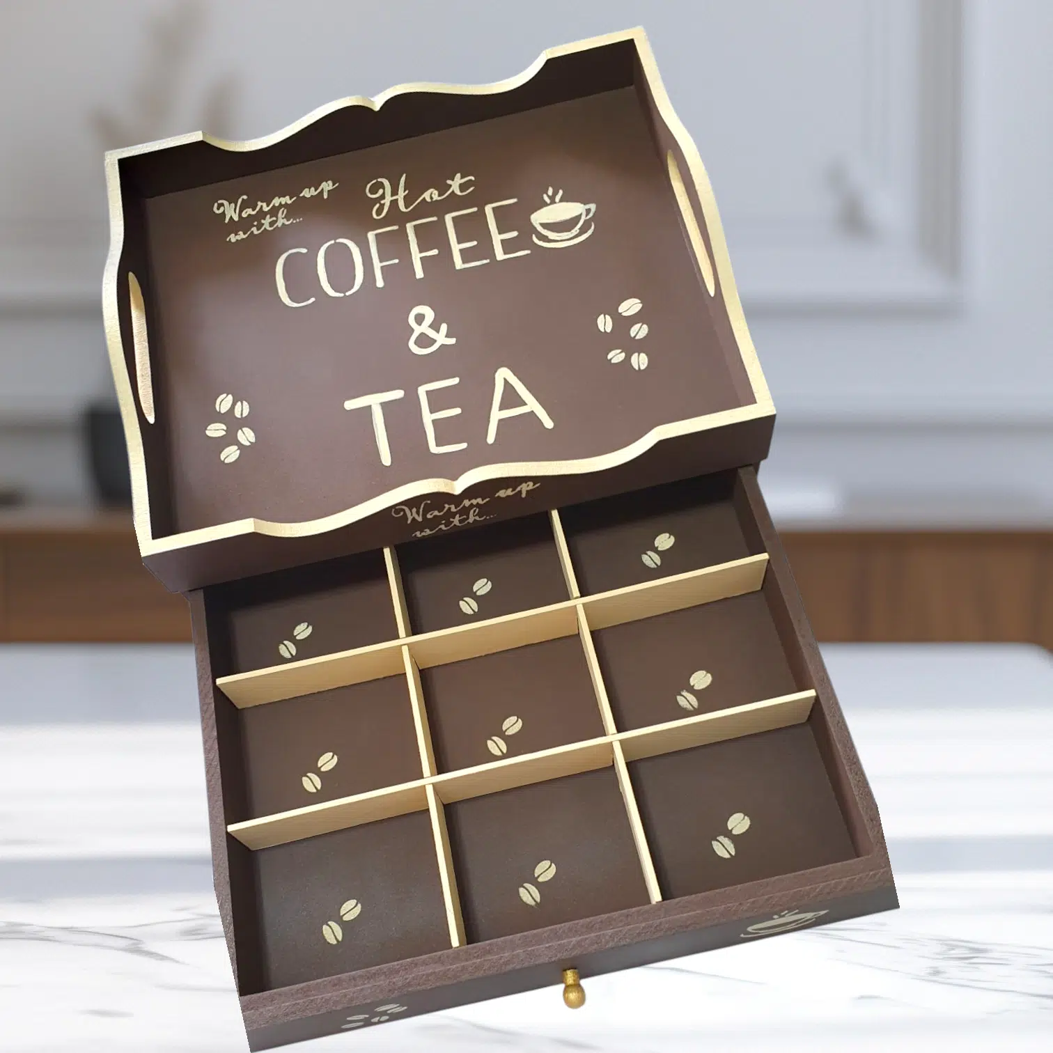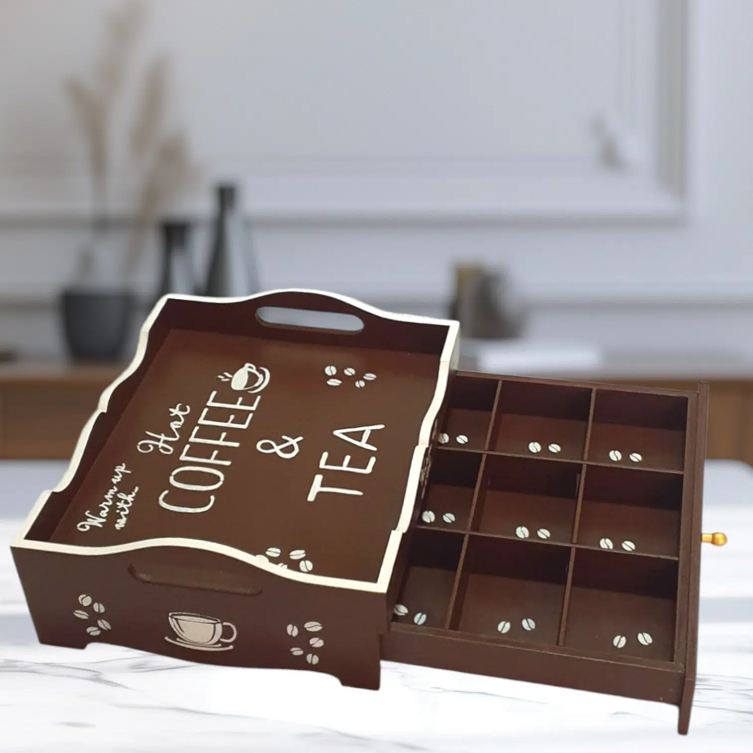 A beautiful piece that sorts all coffee and tea related items in one place.