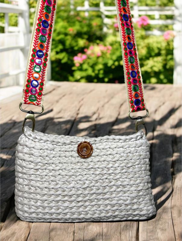 Minimal crochet design meets a joyful strap for a fresh, everyday look.