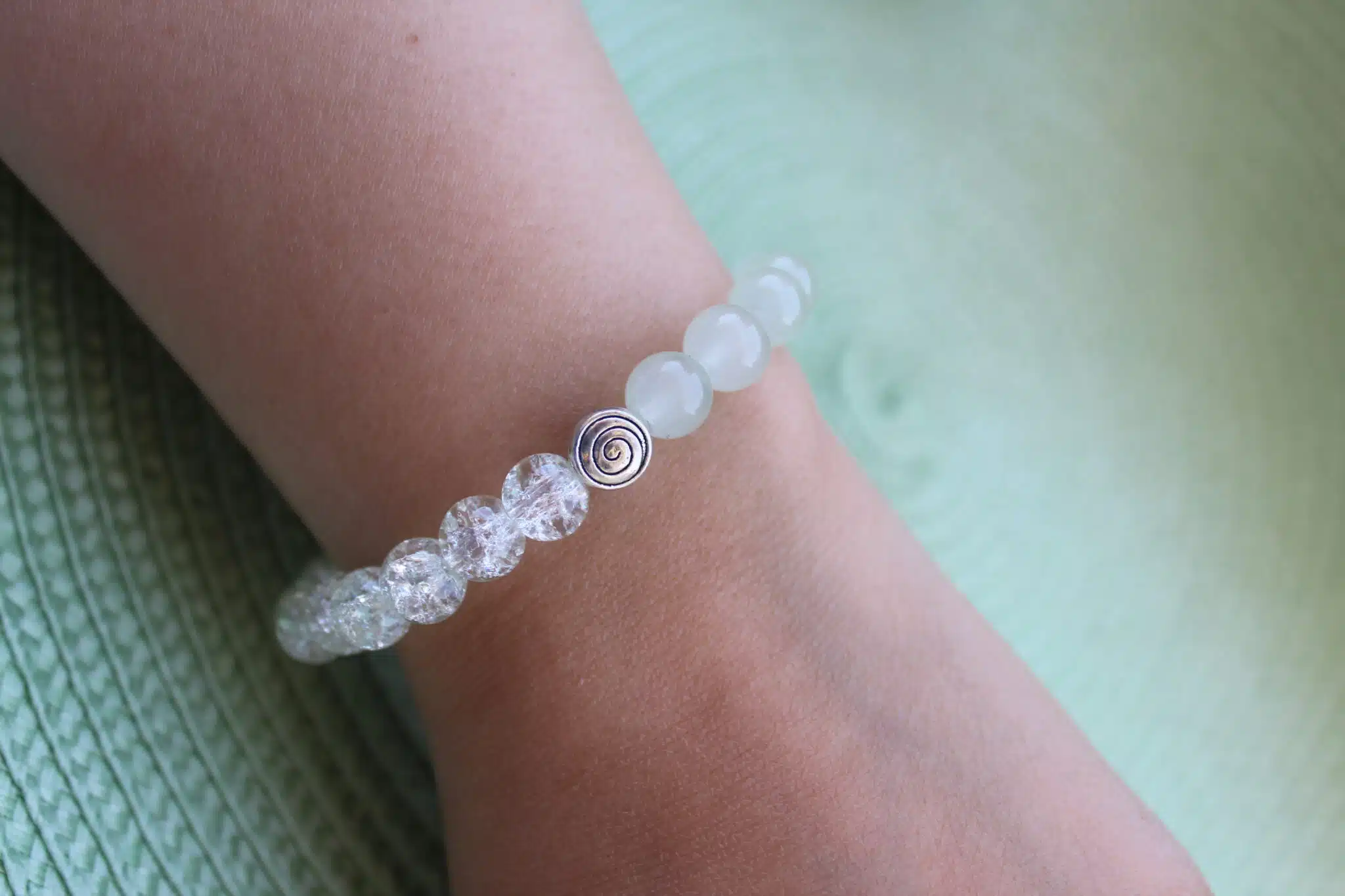 Mint Bracelet with a touch of silver round space bead
