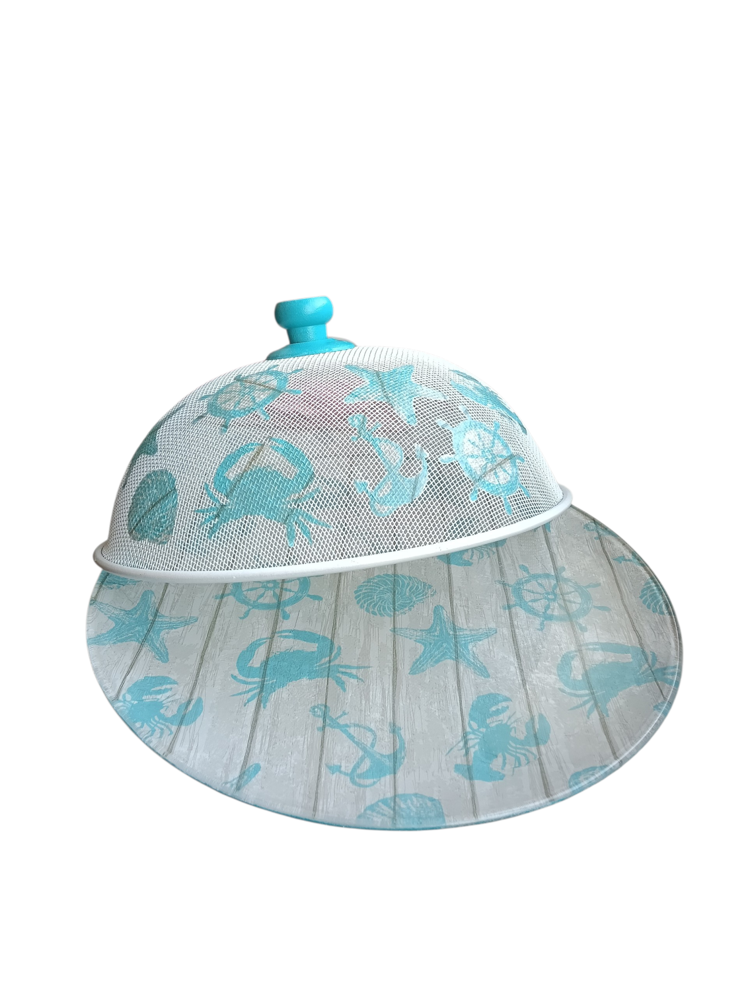 32 cm decoupaged glass plate with a mesh cover , complete your set with the cutlery box and napkin holder sold separately