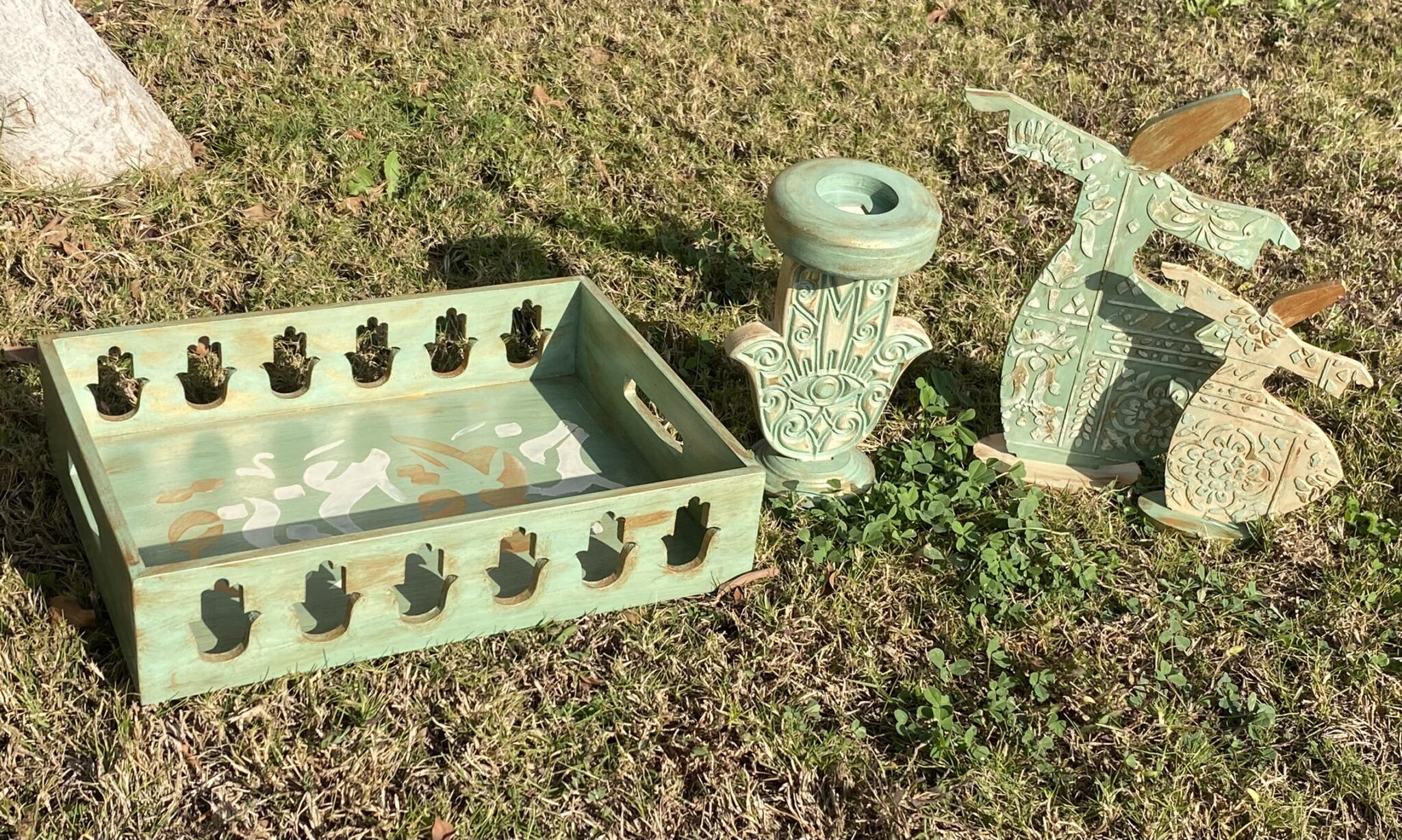 Wooden carved kaf design tray in Arabic design