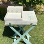 Wooden summer coffee table in mint x beige colors and tropical theme