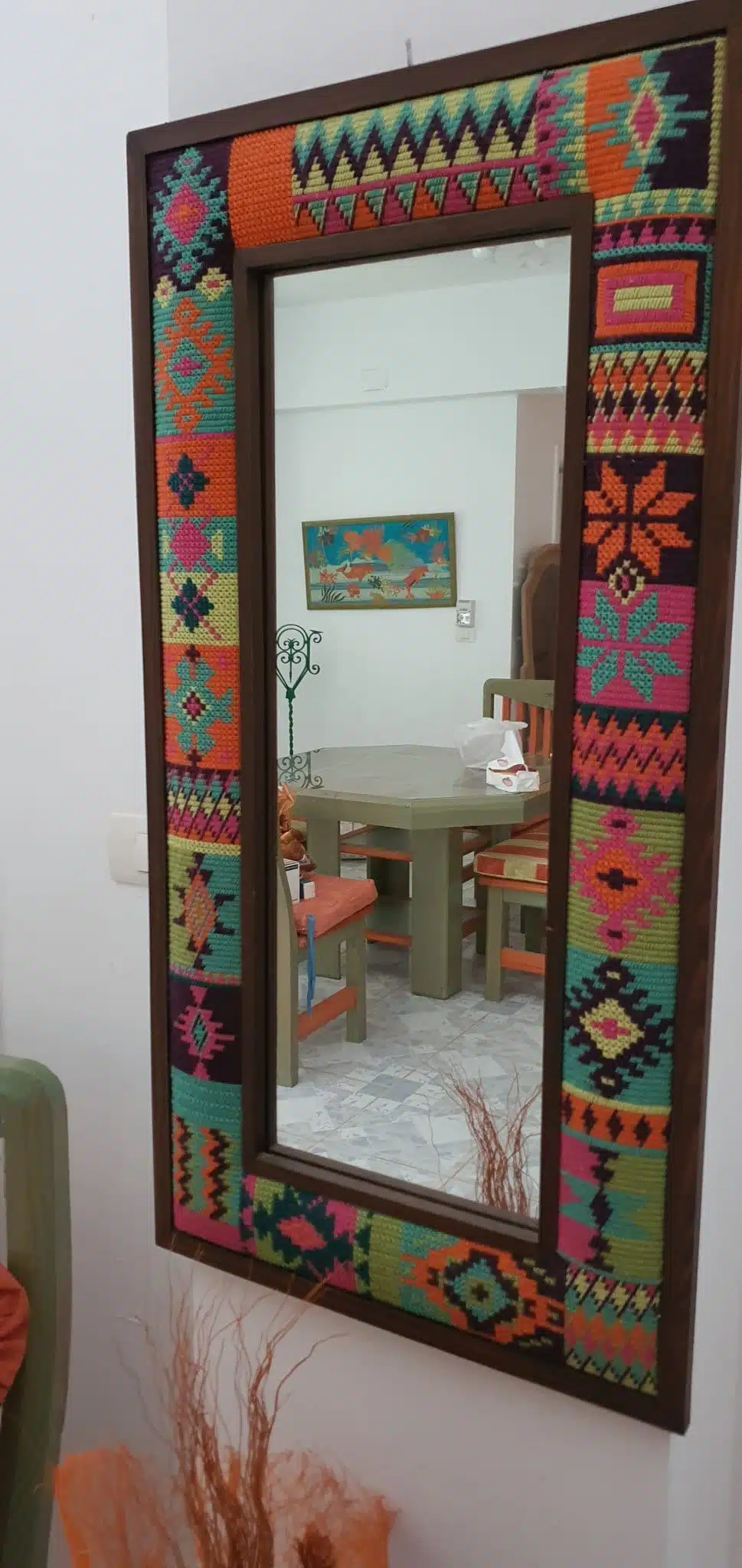 A colorful embroidered mirror 100×50