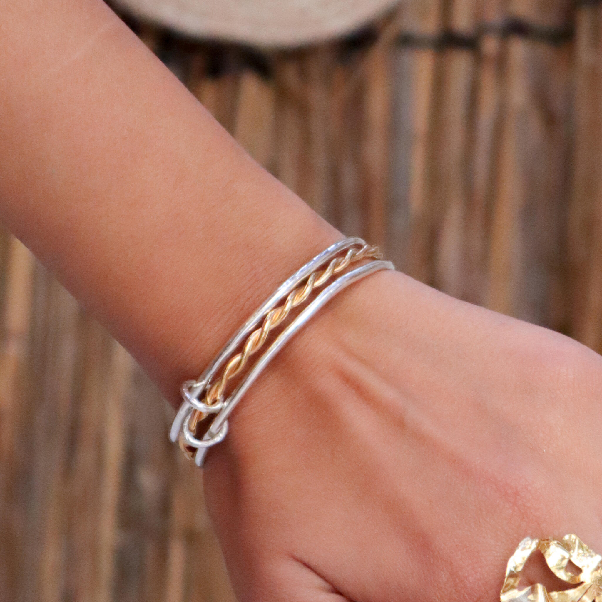 Hand made gold and silver plated copper bangle