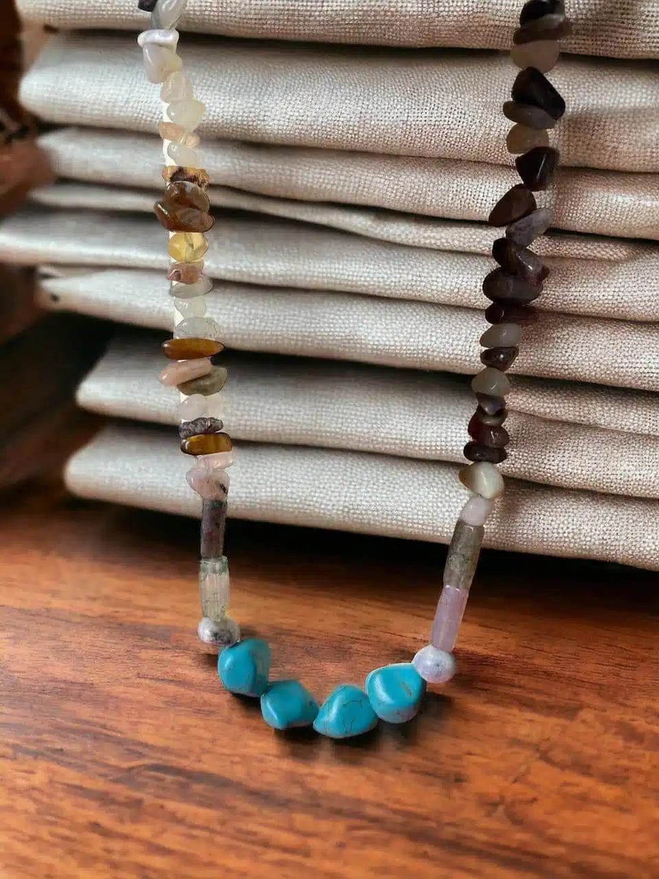 Mix of Turquoise stones and mixed colors smaller stones with different shades and shapes