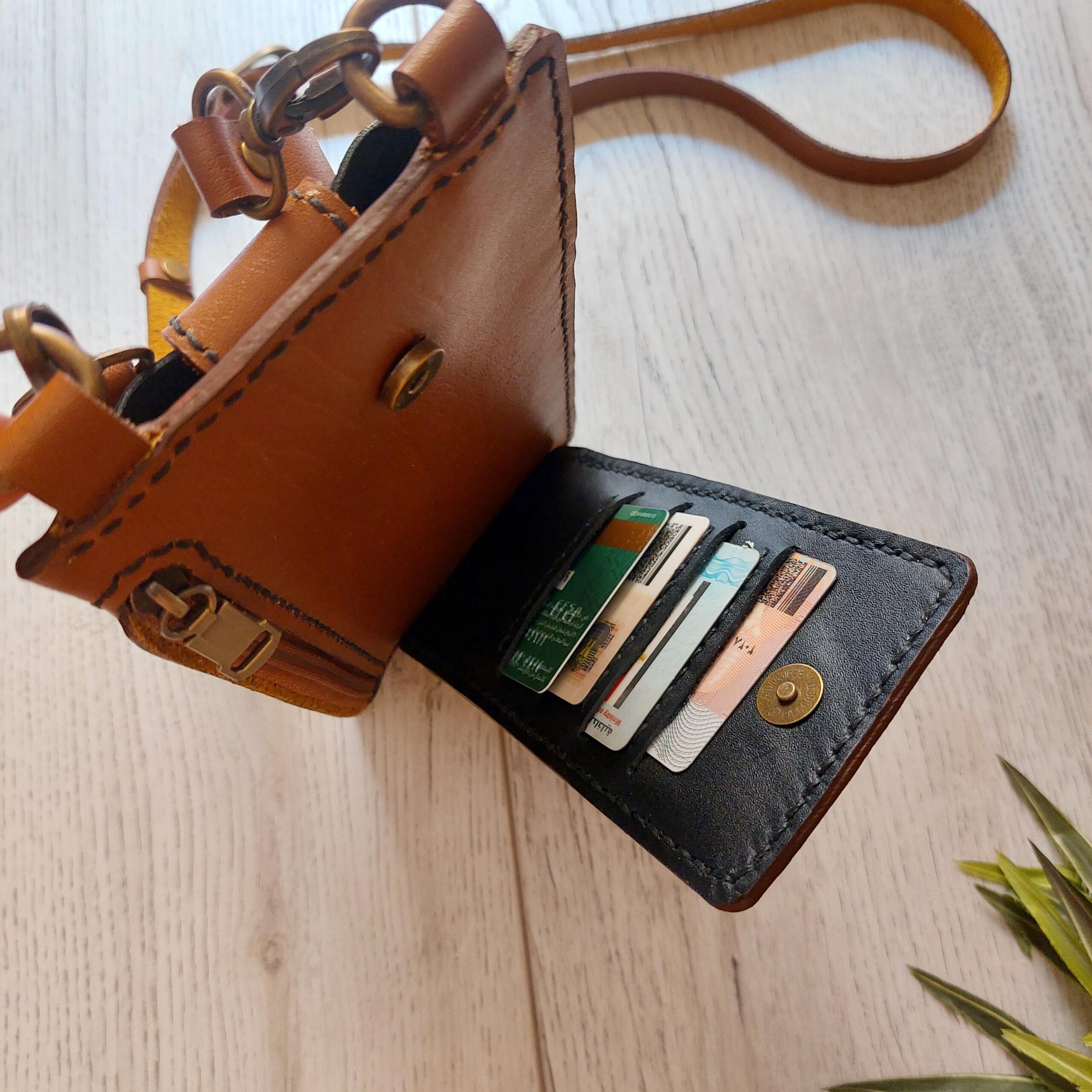 شنطة موبايل جلد طبيعى هاند ميد لون هفان × اسود