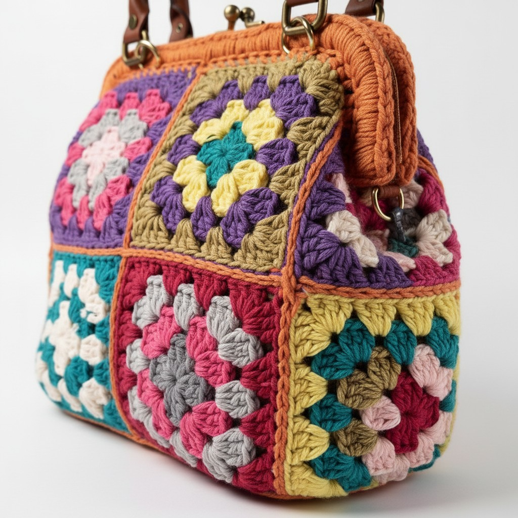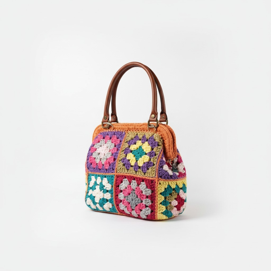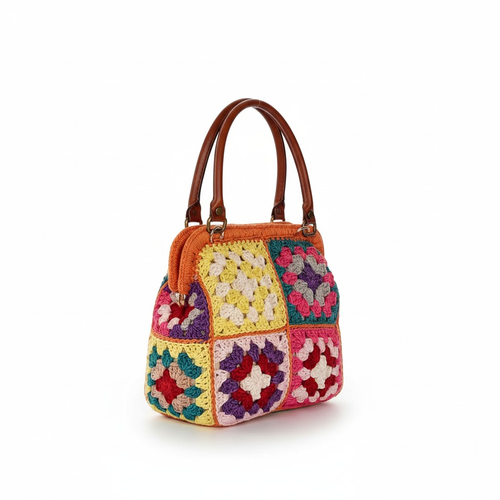 Handmade crochet bag made of colorful cotton yarn