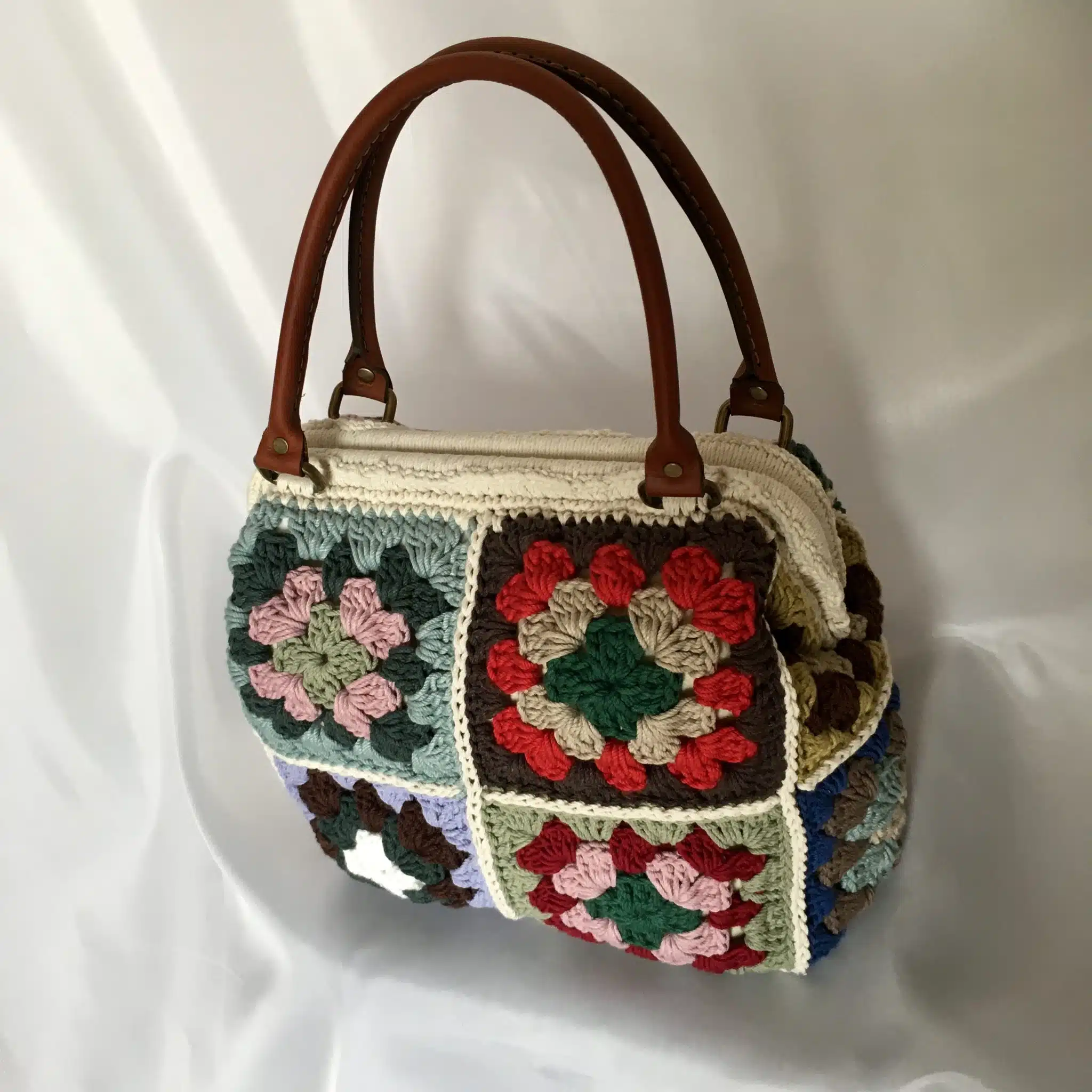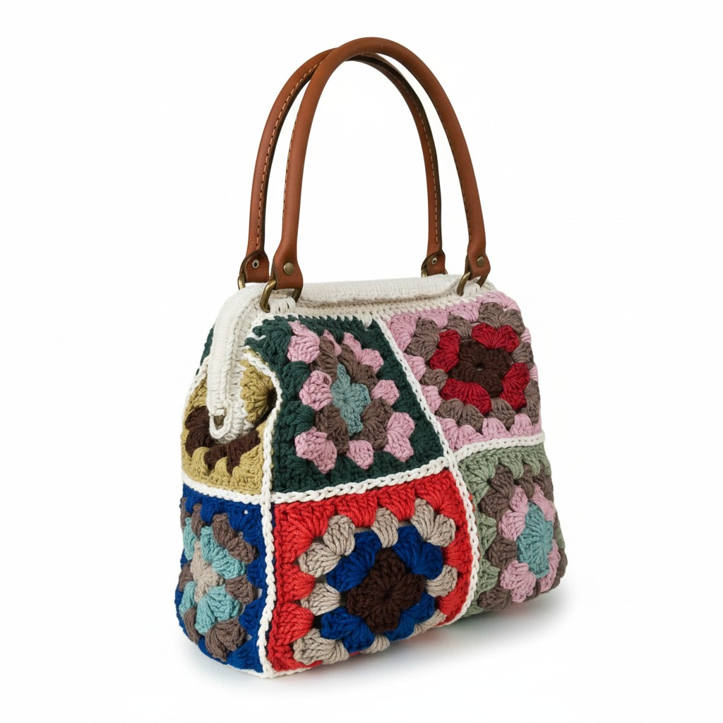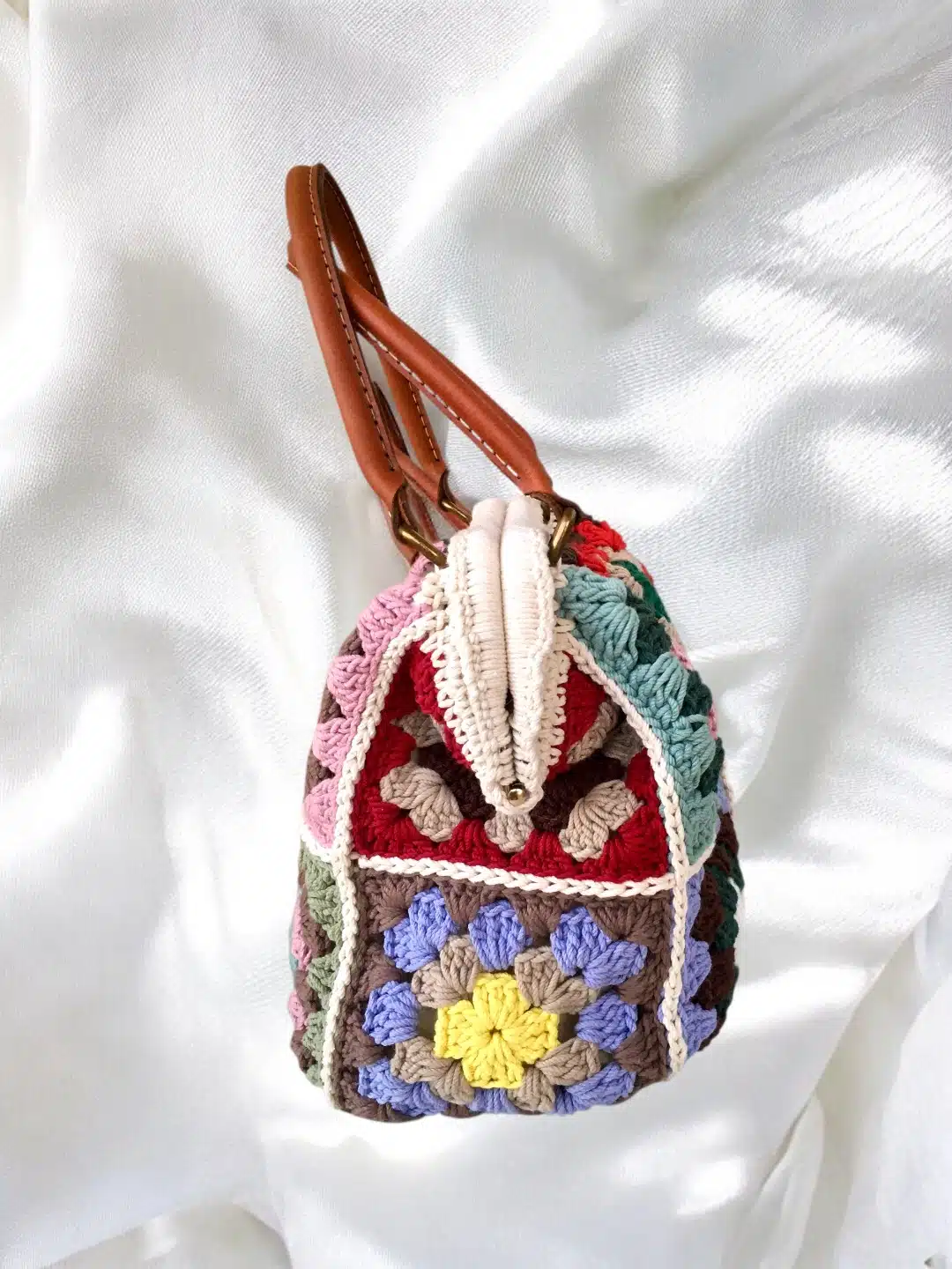 Handmade crochet bag, made of highest quality of cotton yarn, mixed colors with base color Off white.