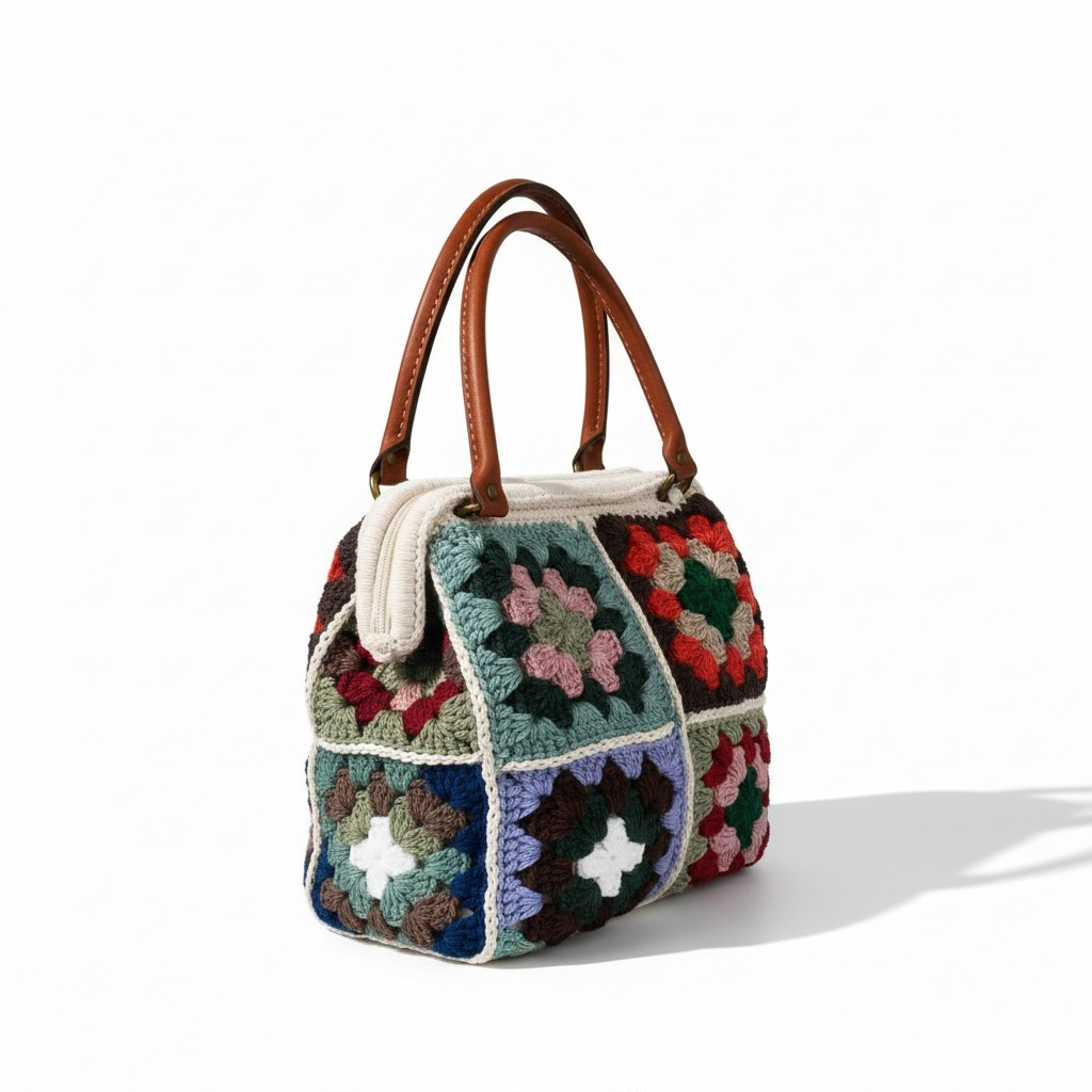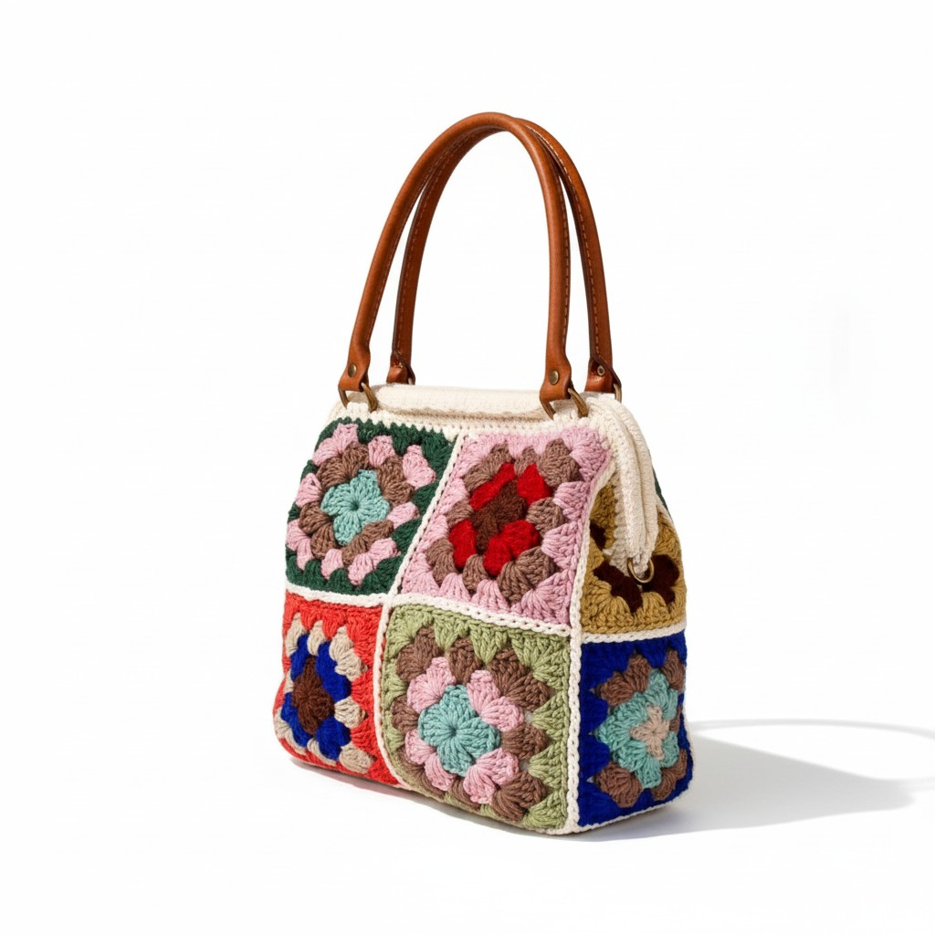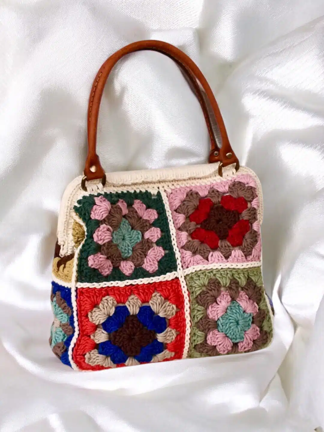Handmade crochet bag, made of highest quality of cotton yarn, mixed colors with base color Off white.