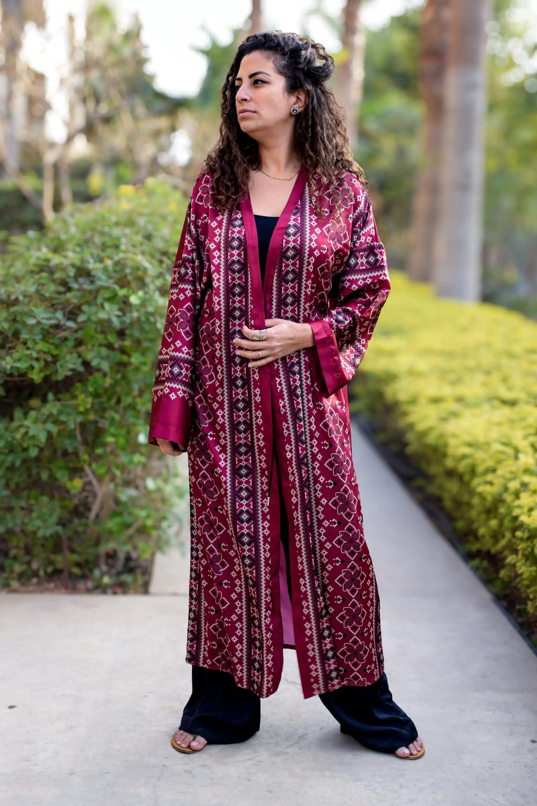 Our unique mosaic muse kimono made of Satin silk fabric.