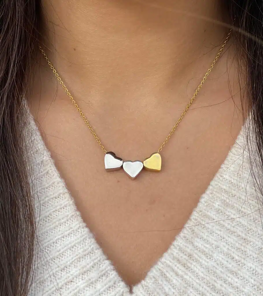 Pure 925 silver Necklace, with hearts platted in 18 gold and rose-gold.