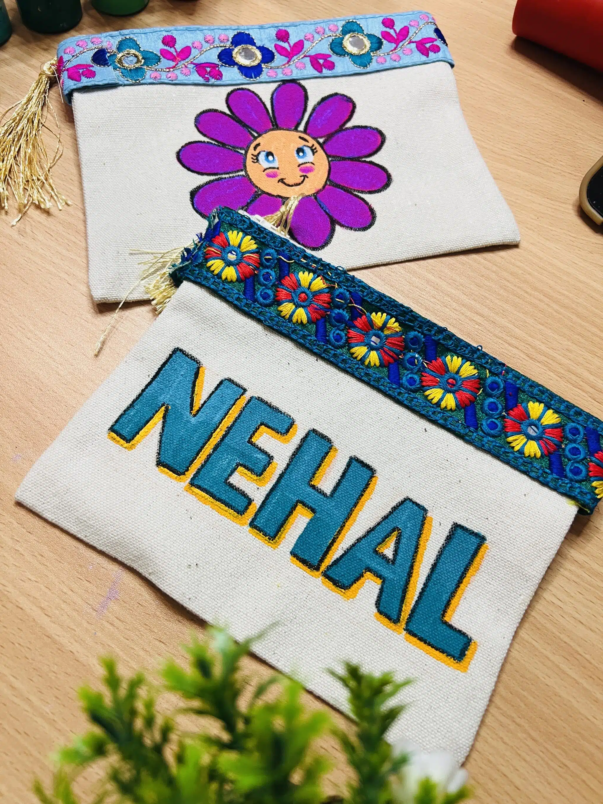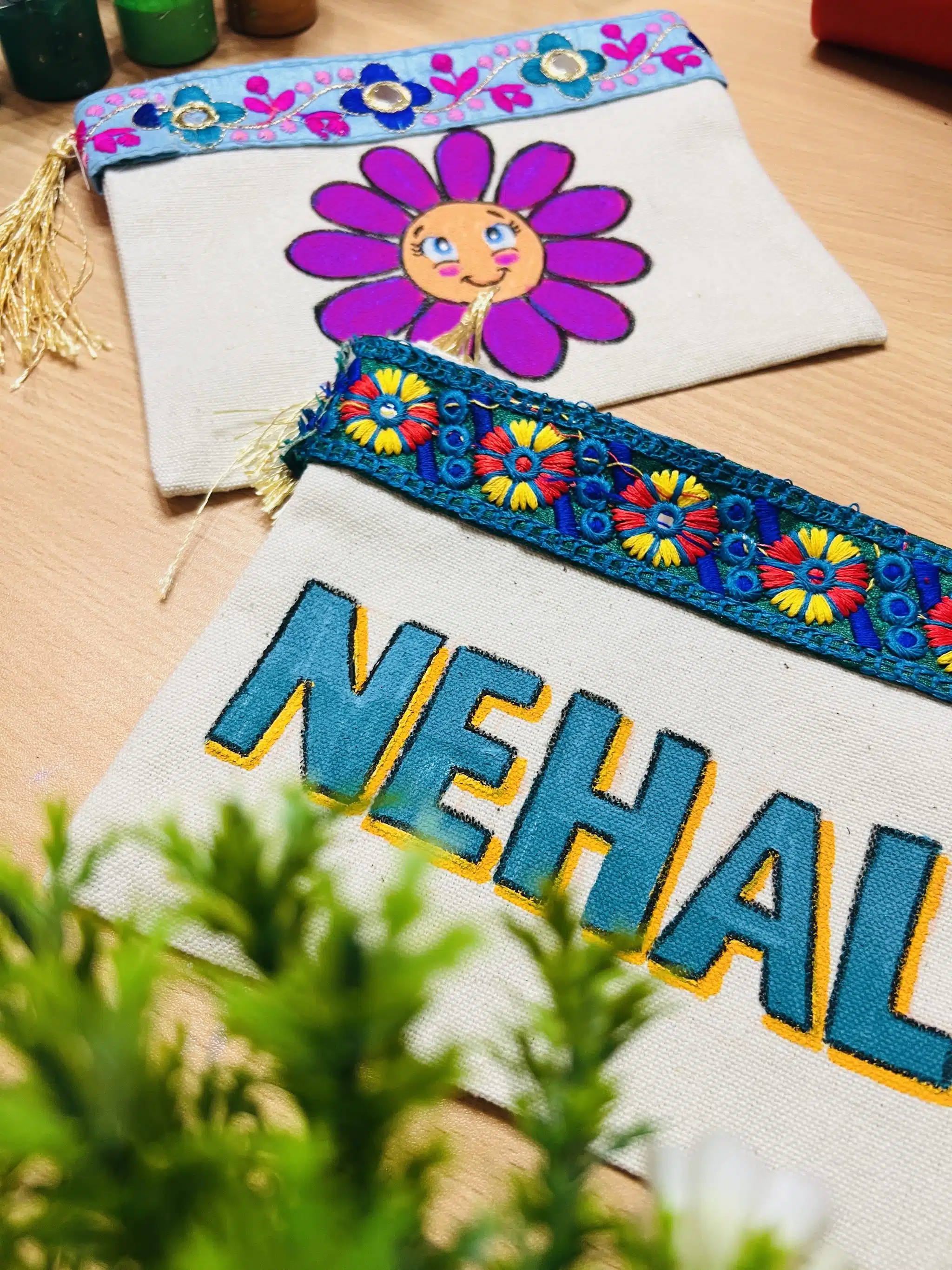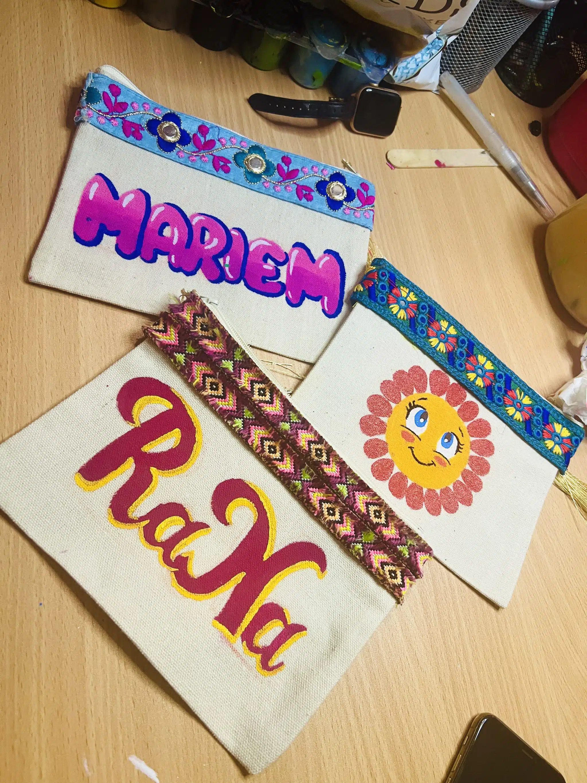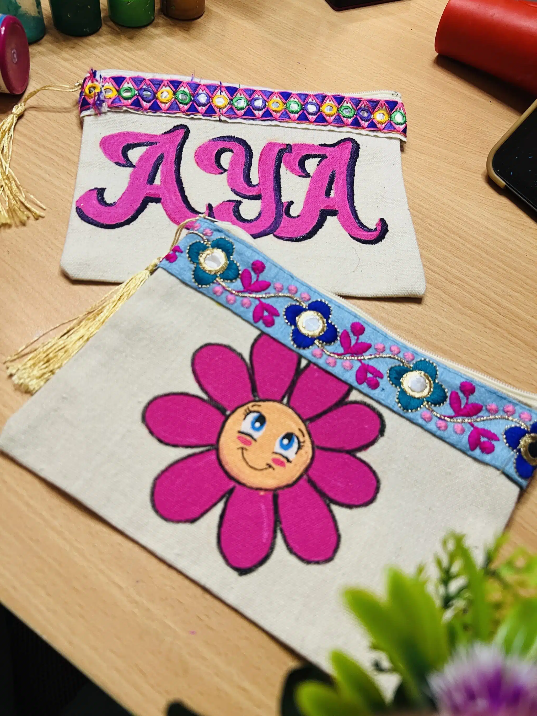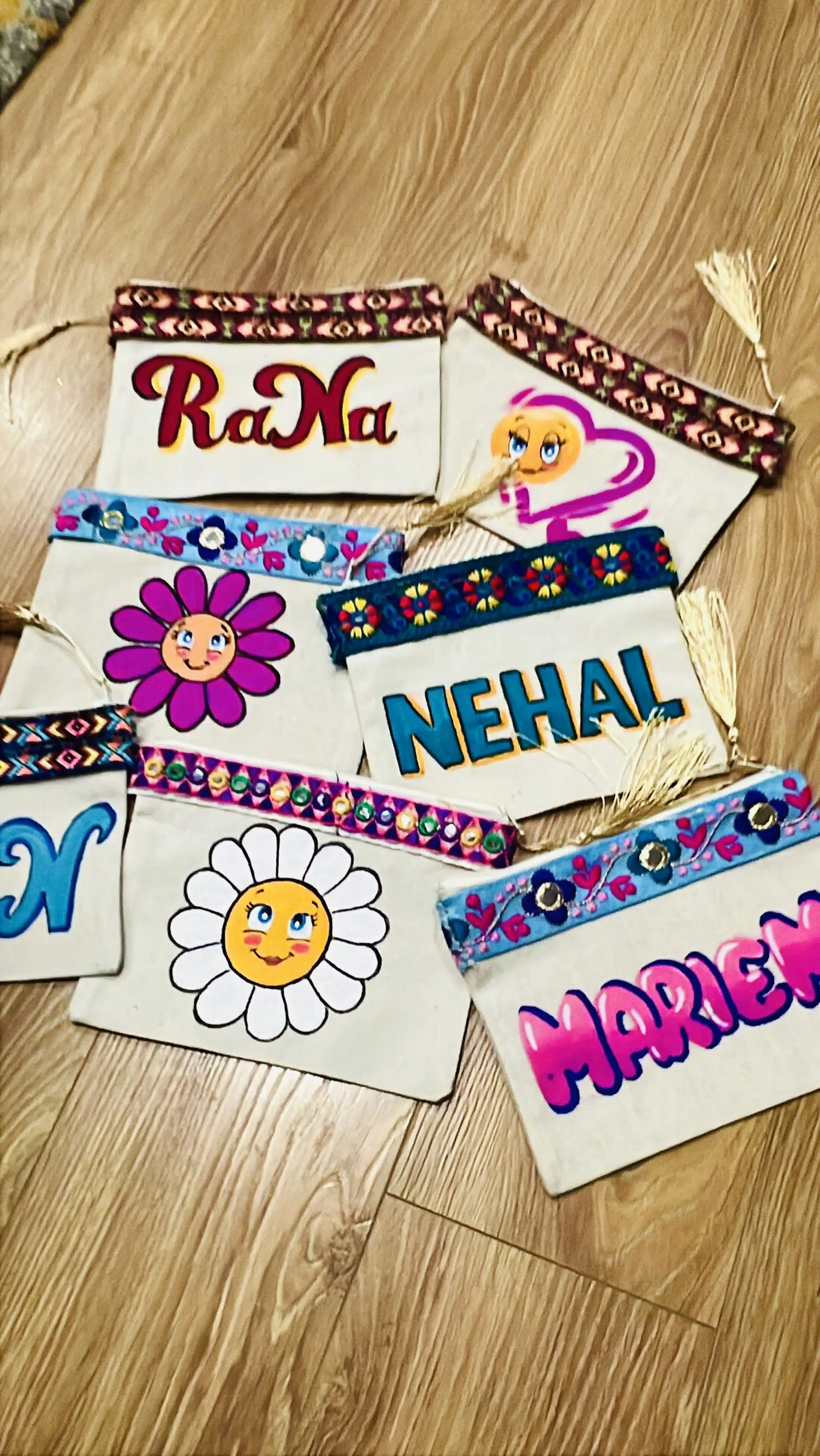 Hand painted , stable colors and washable