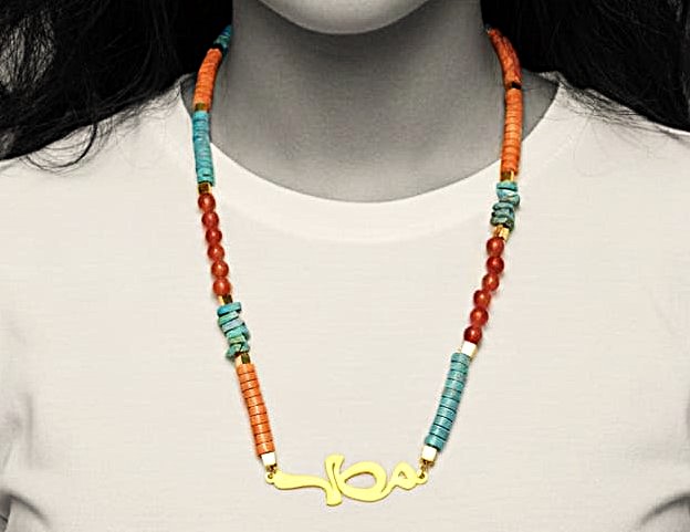 adjustable Multicolored stones necklace with MISR gold plated 18k