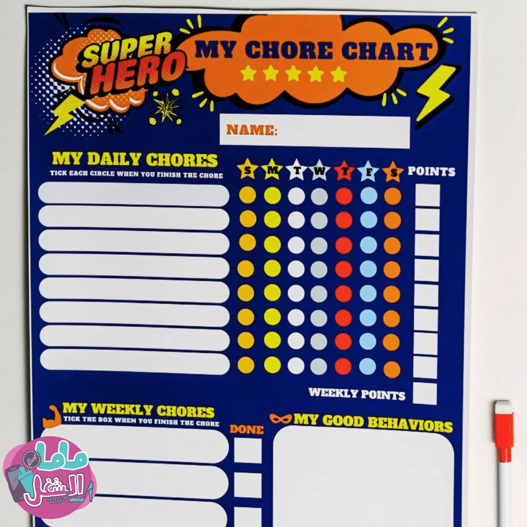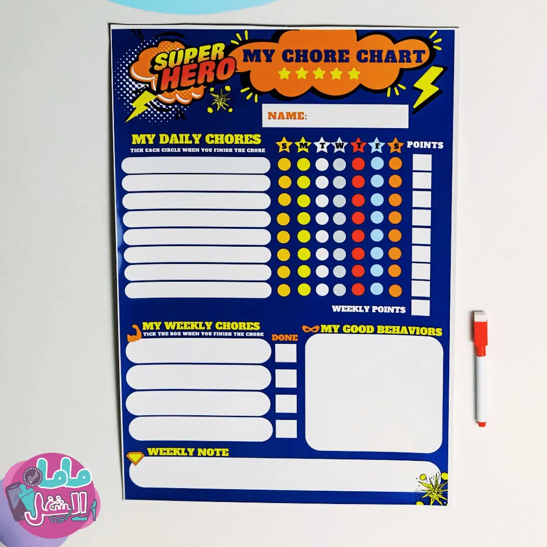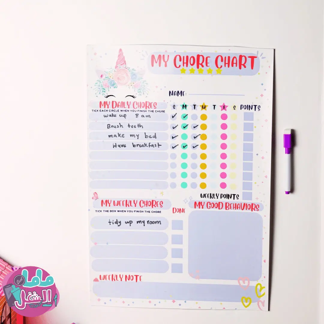 My Chore chart is an erasable weekly chart that will encourage, help and reward your kids to follow a daily and weekly routine . This chart will help them to be more disciplined and responsible.