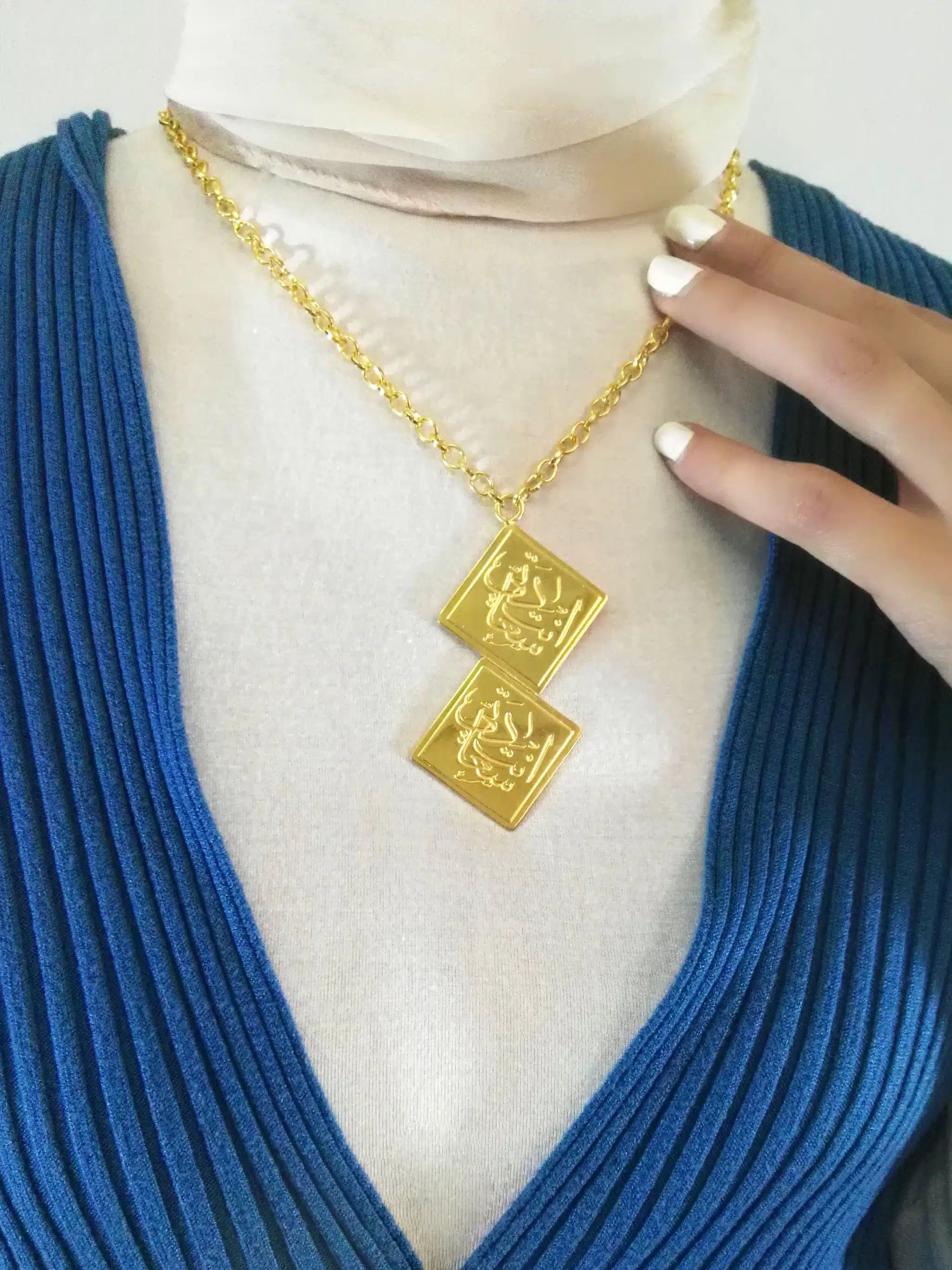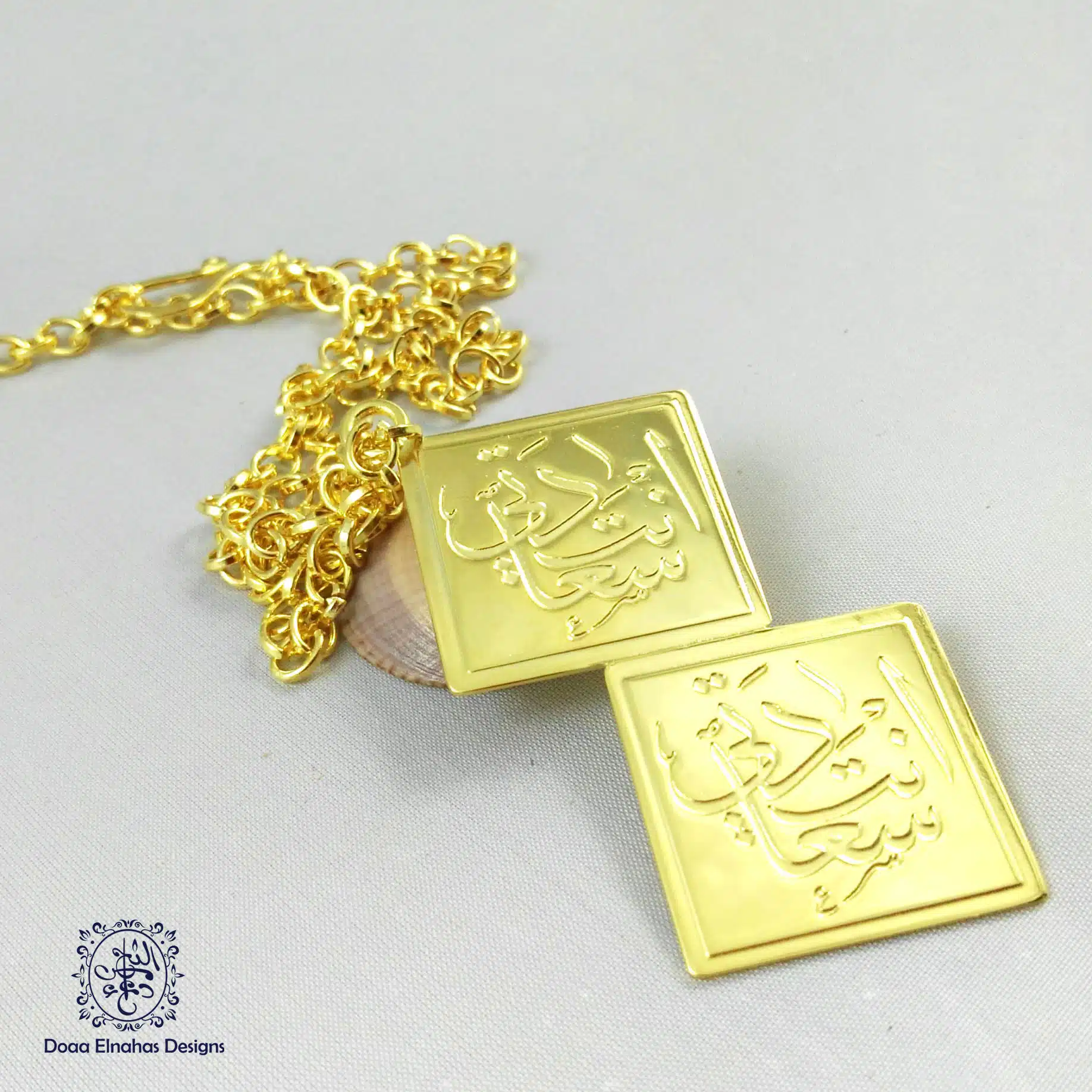 Gold-plated brass necklace with Arabic calligraphy engravings “انت سعادتي”