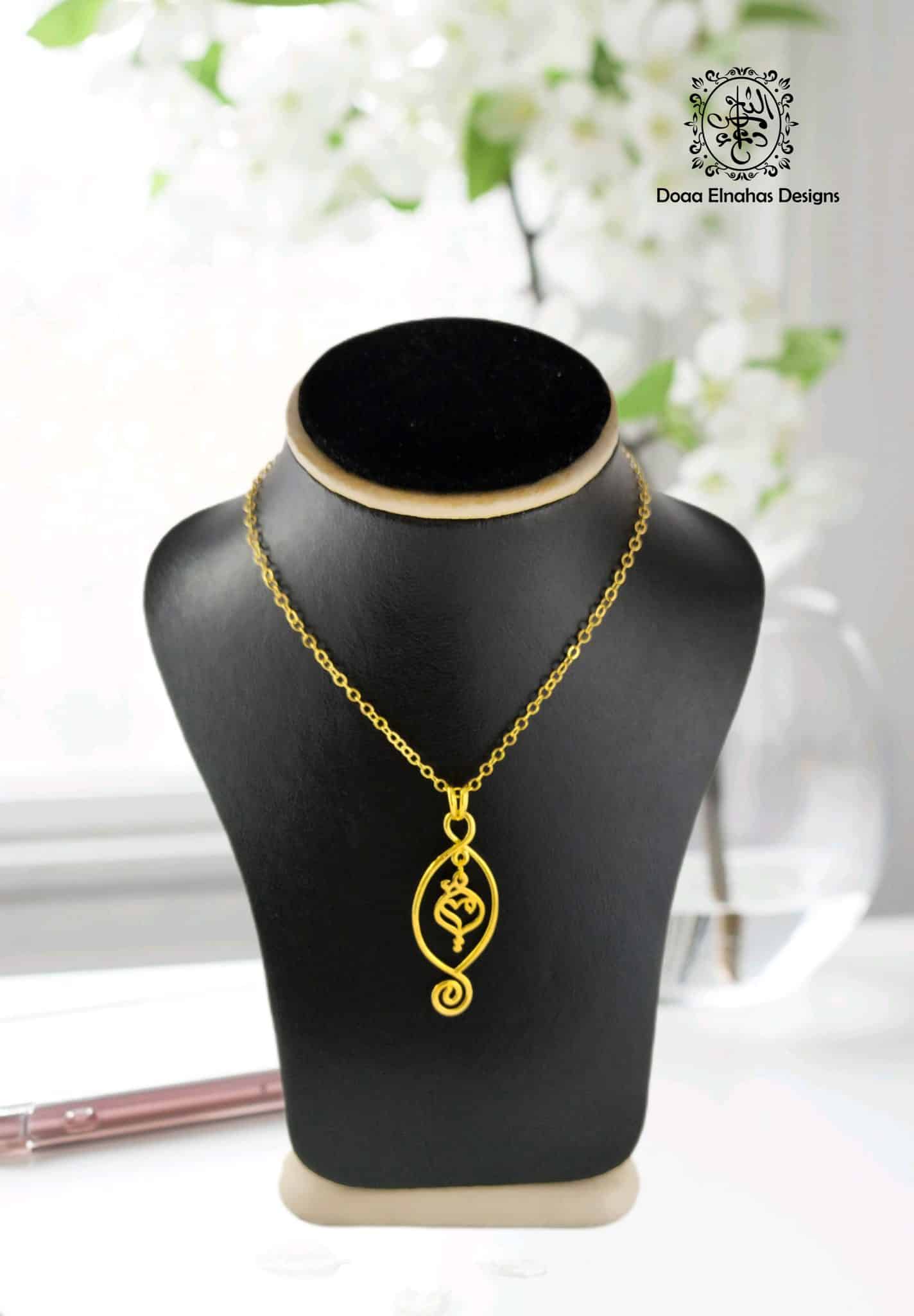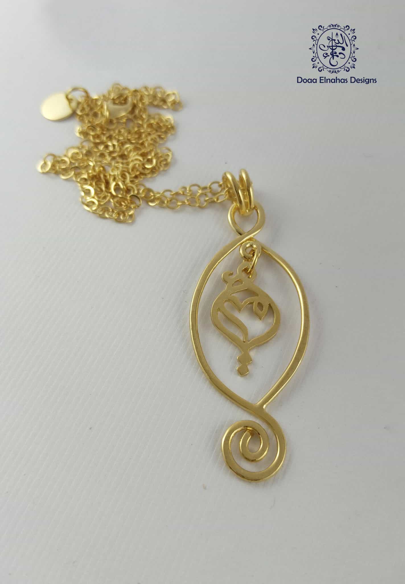Gold-plated brass necklace with Arabic calligraphy “أمي”