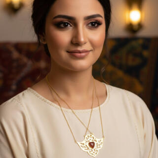 Gold-plated matte brass necklace with two flowers pendant one of them is movable