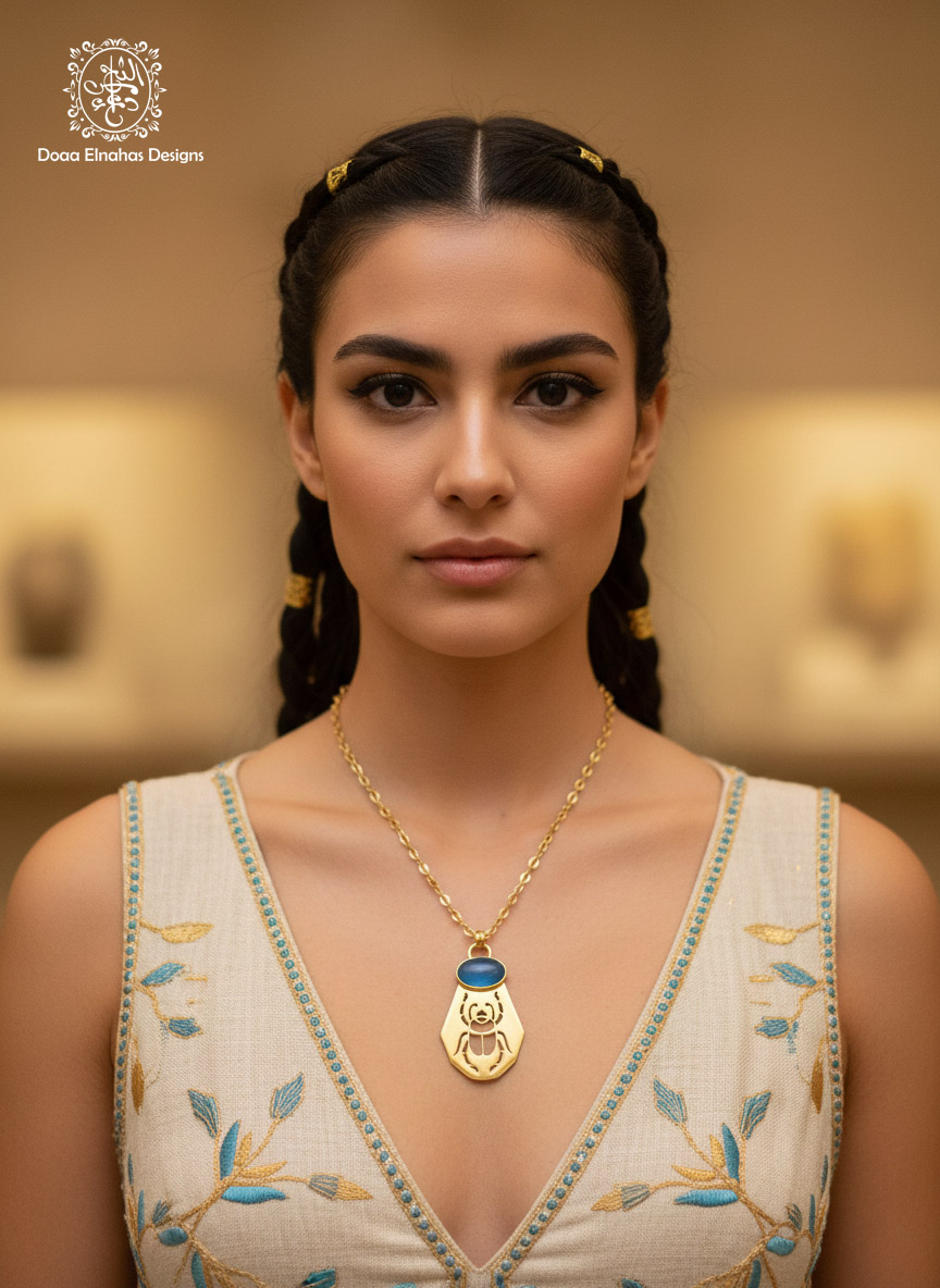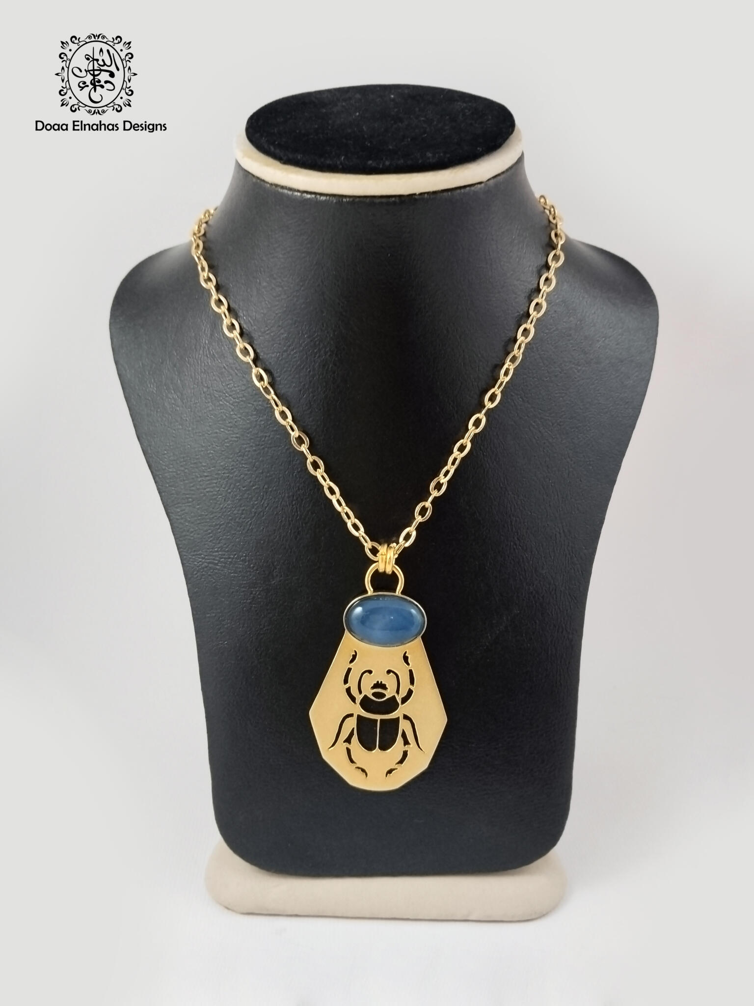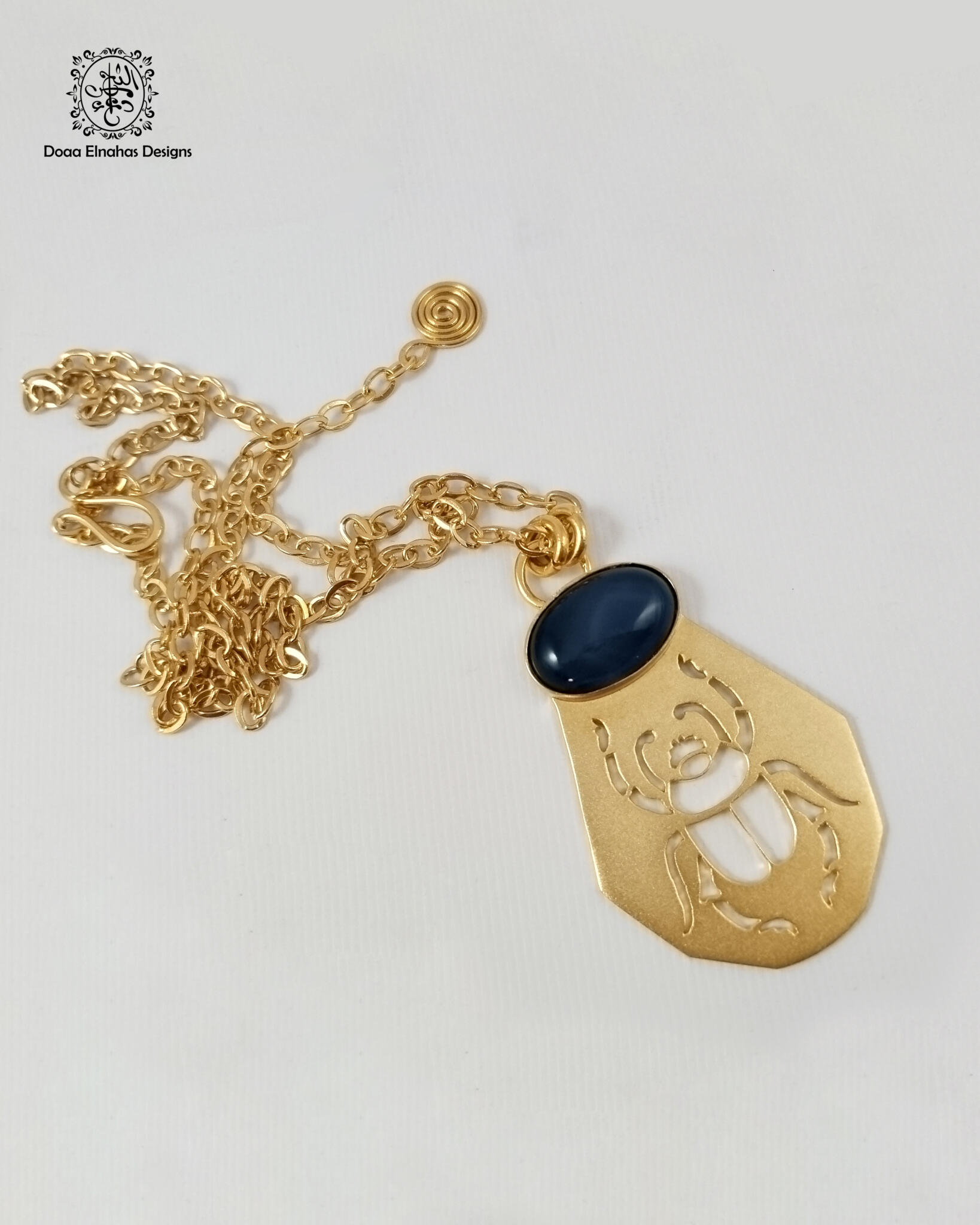 Gold-plated (matte) brass necklace, ancient Egyptian scarab