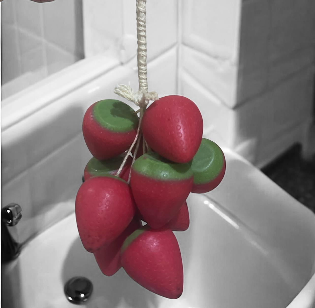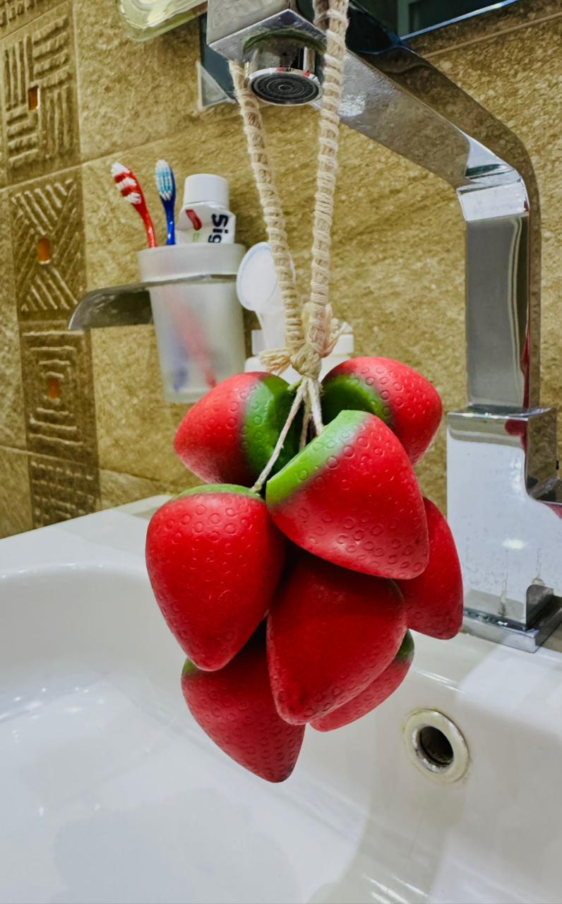 A trendy glycerin soap designed to hang on the tap.