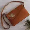 Natural leather bag with copper charm genuine leather lining , there is internal pocket size 28cm wide,18cm length
