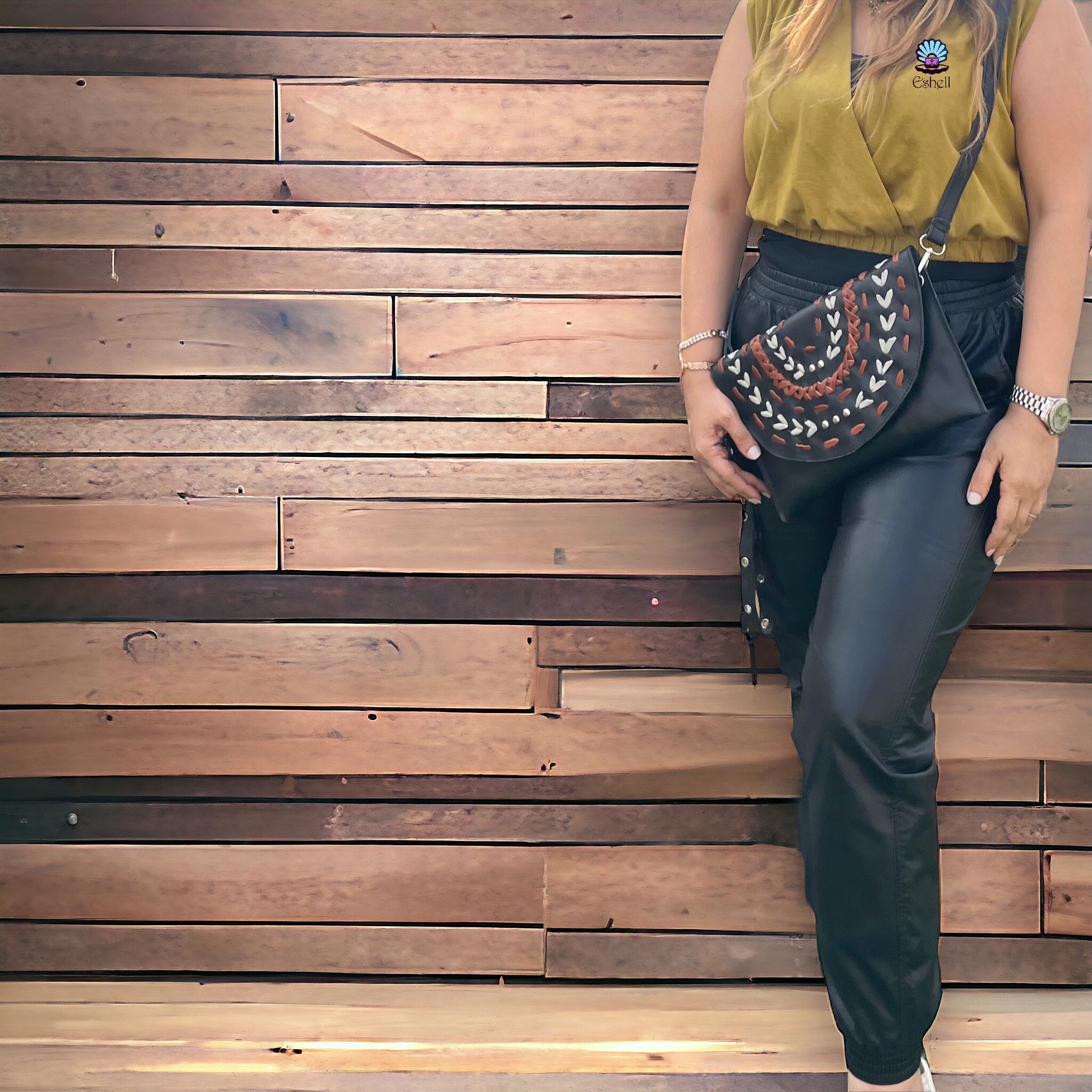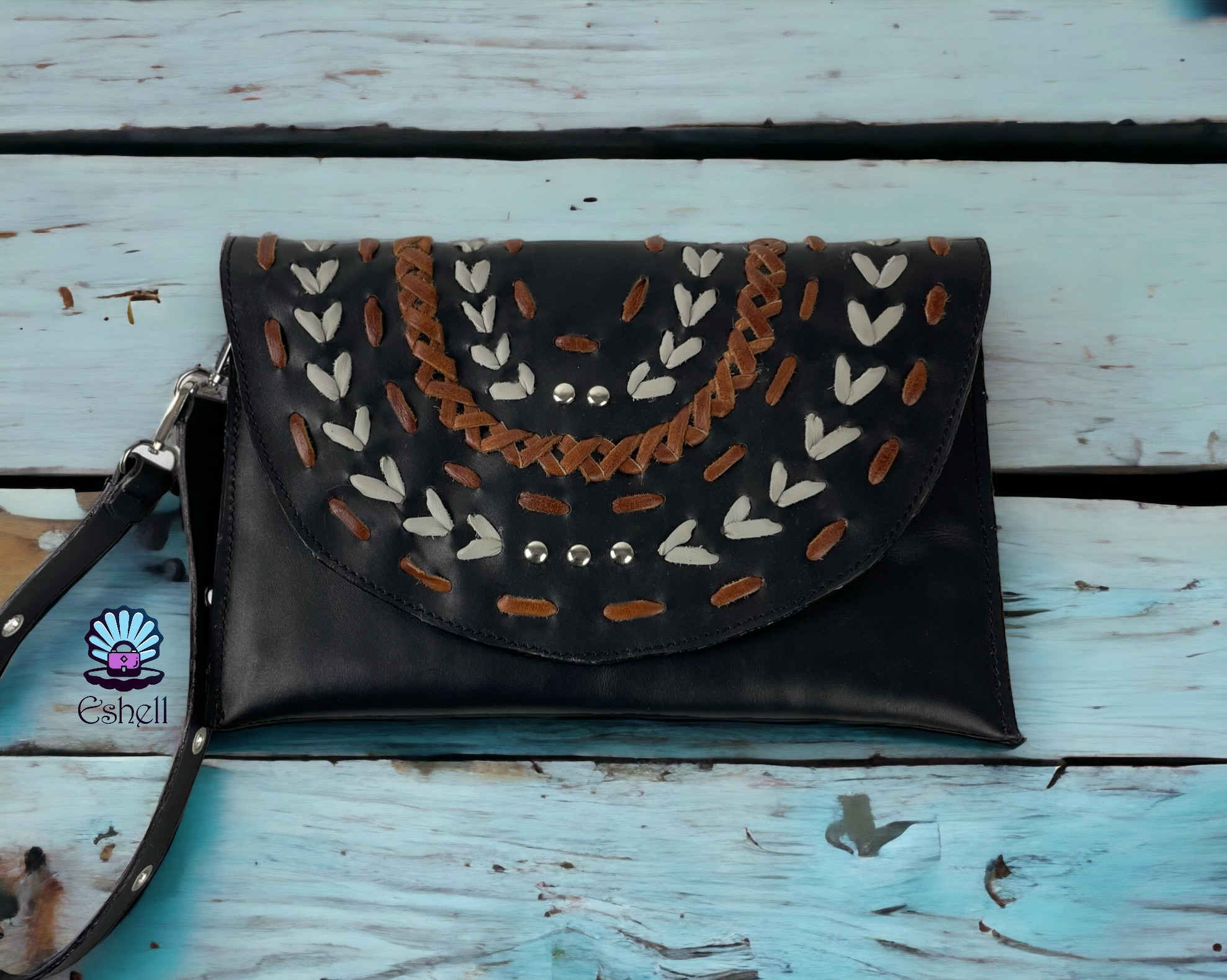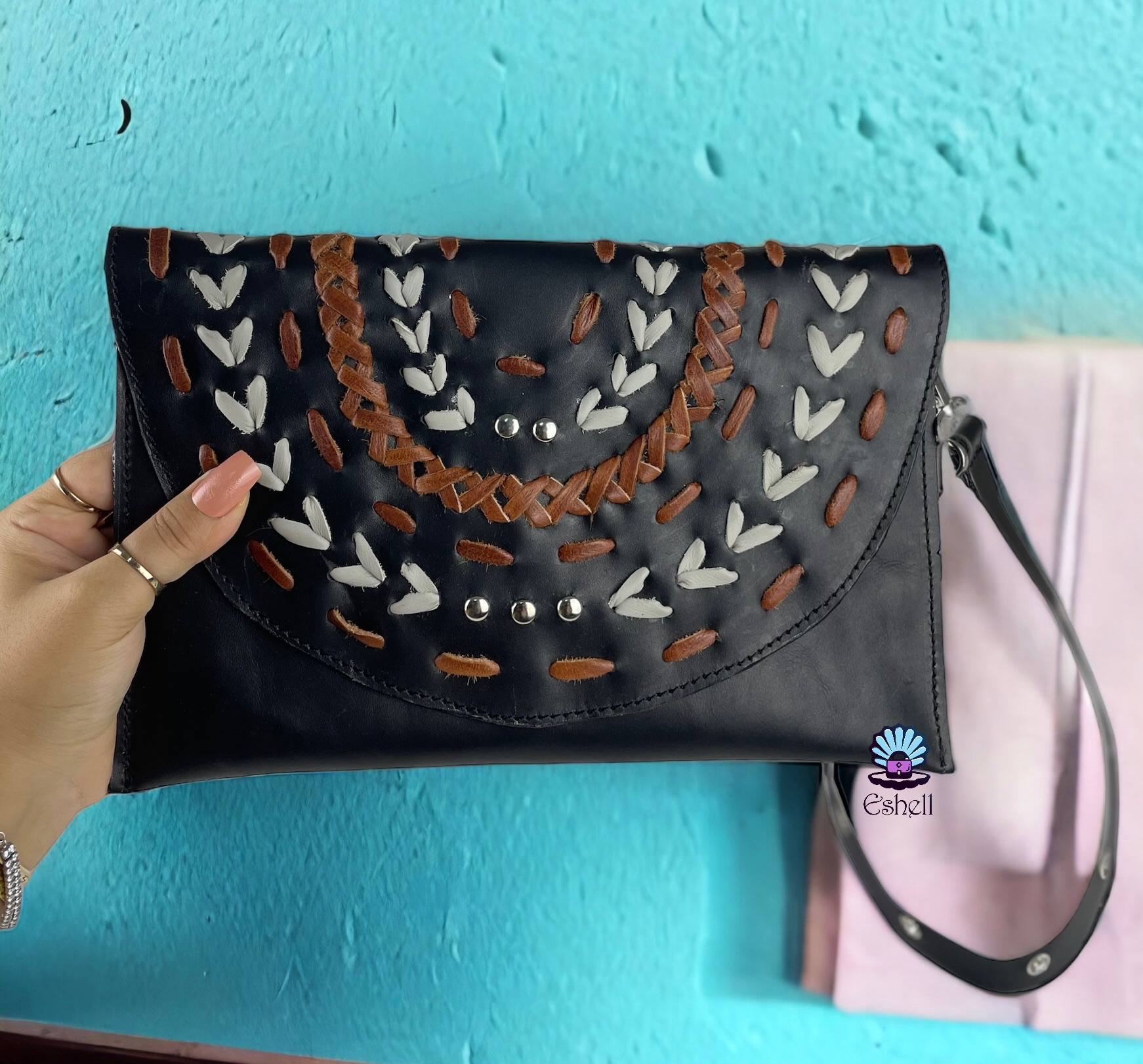 • Closure Type: Magnetic Closure • Style: shoulder / crossbody Bag • 100% handcrafted, The purse has two handles: a clutch and a crossbody strap.