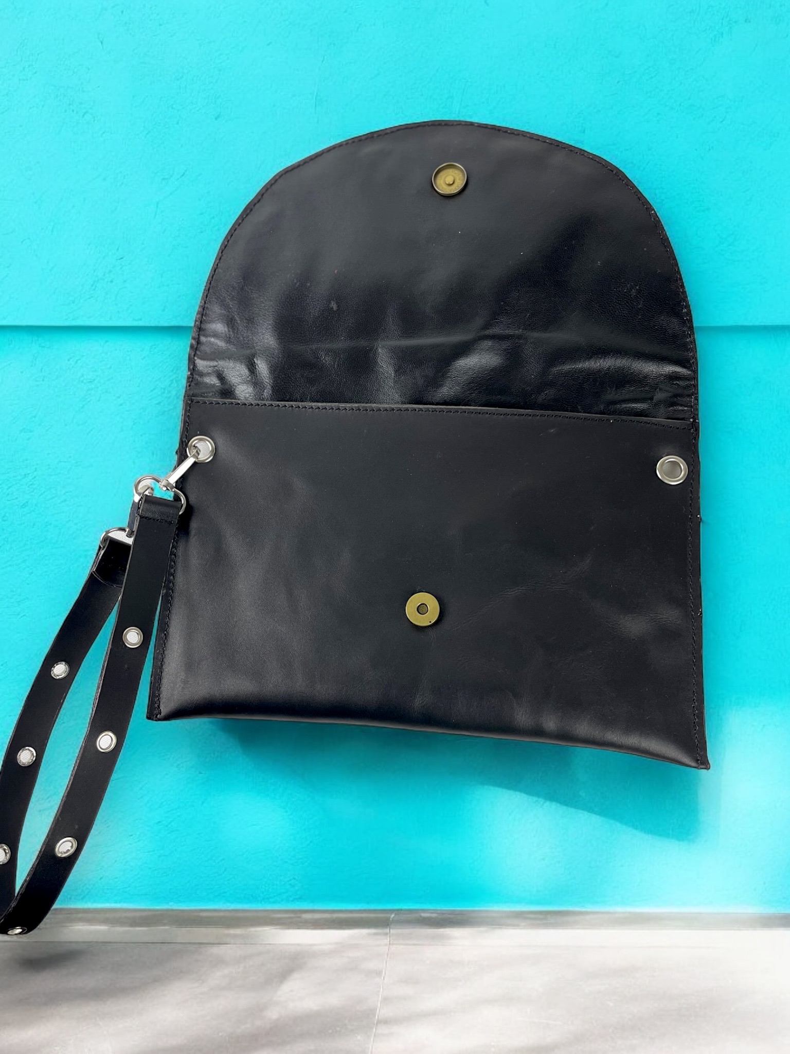 • Color: black •The bag has a natural leather lining inside with two pockets.