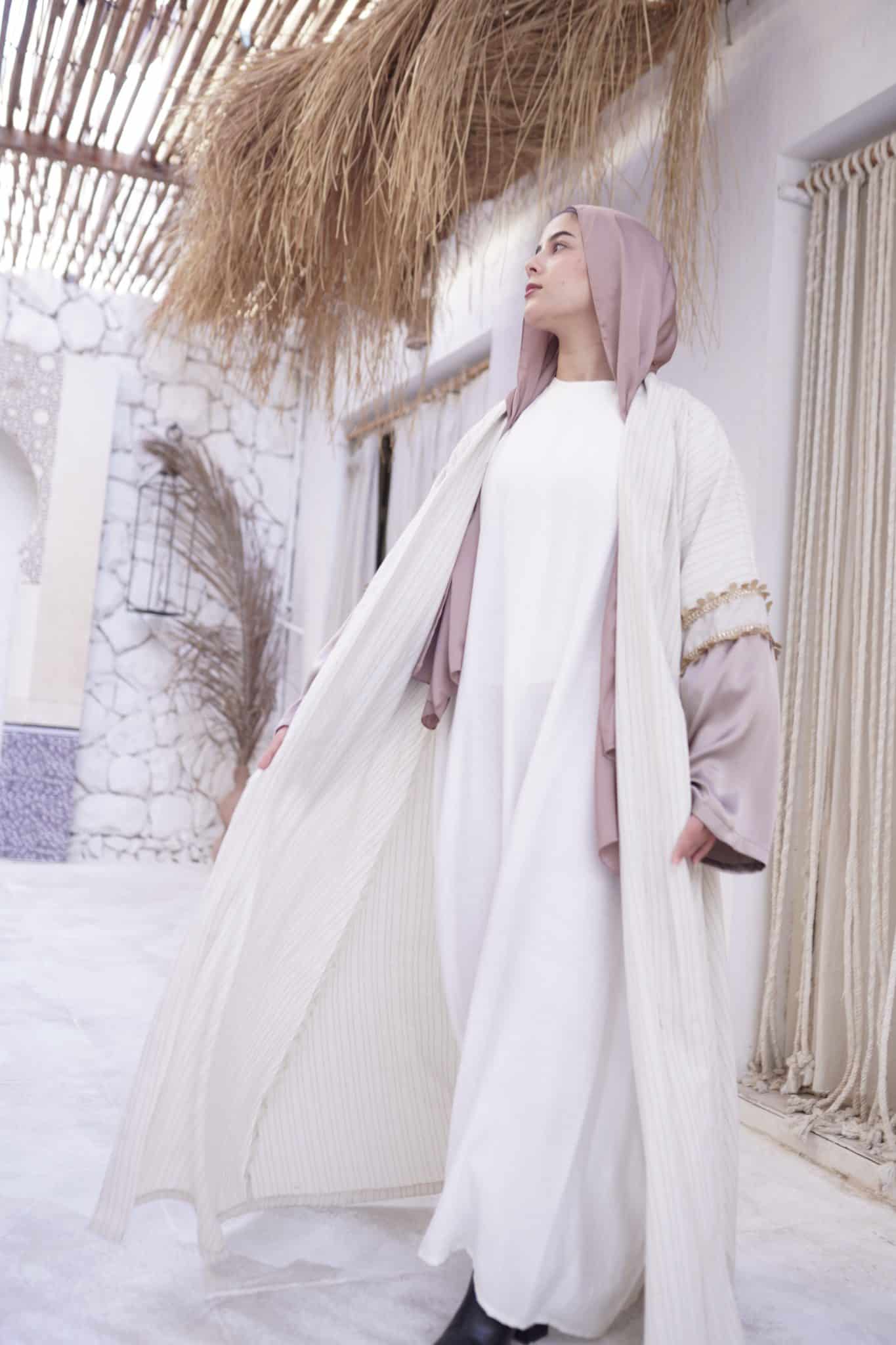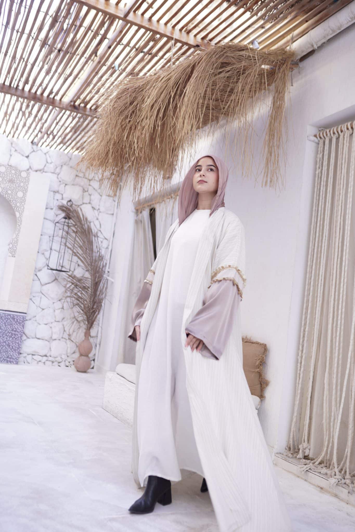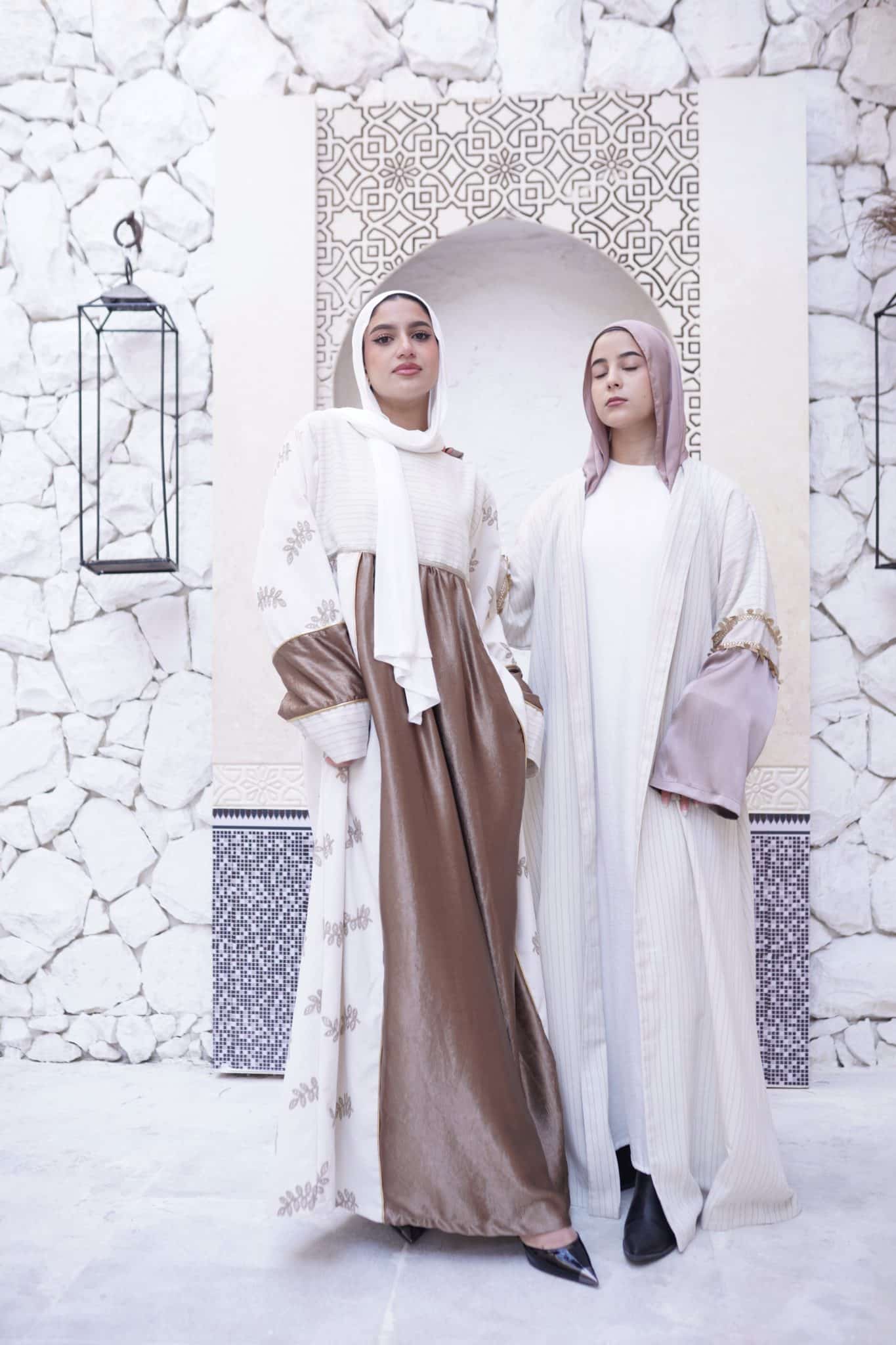 Natural Linen Kaftan/Abaya with Satin and Gold Embroidery