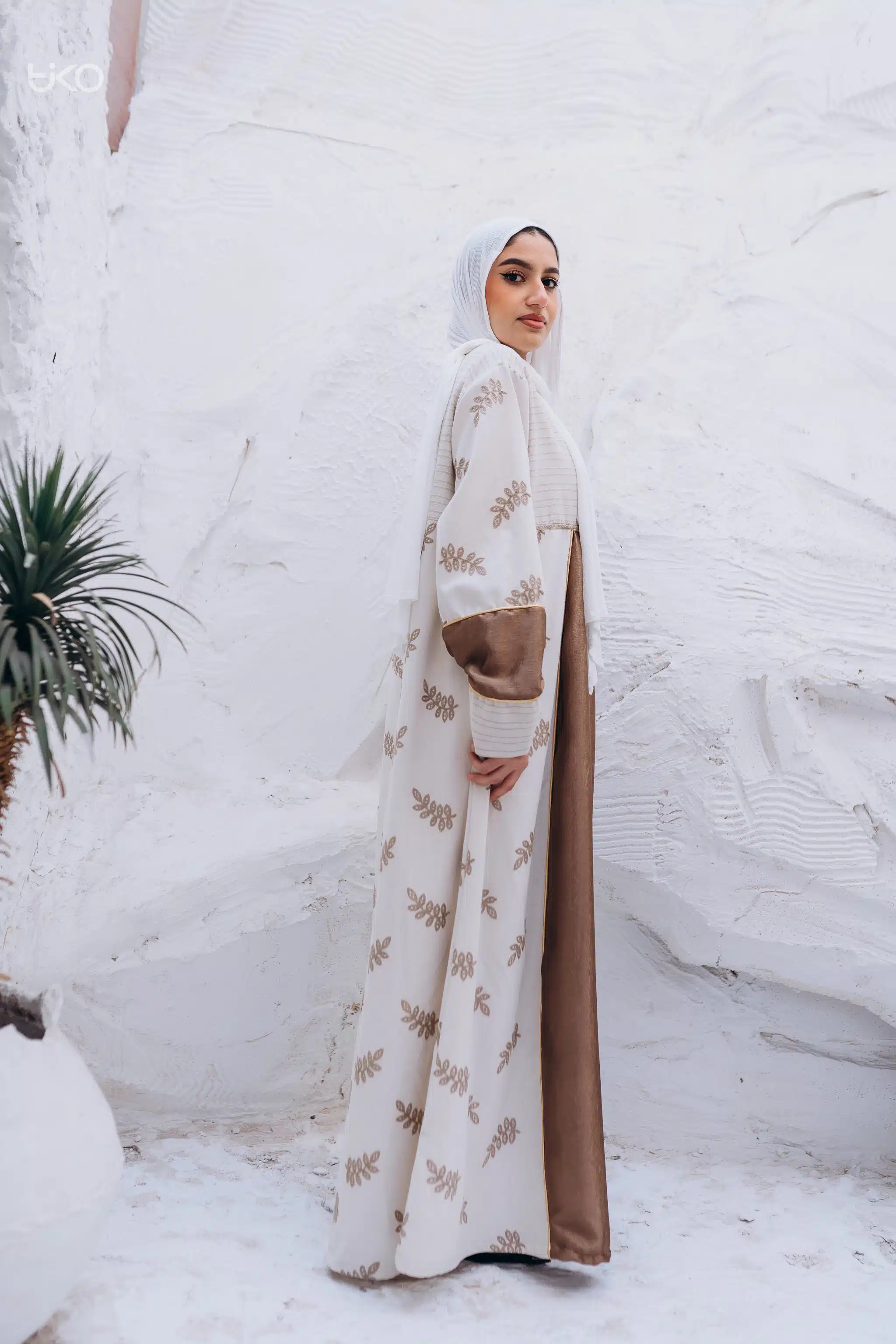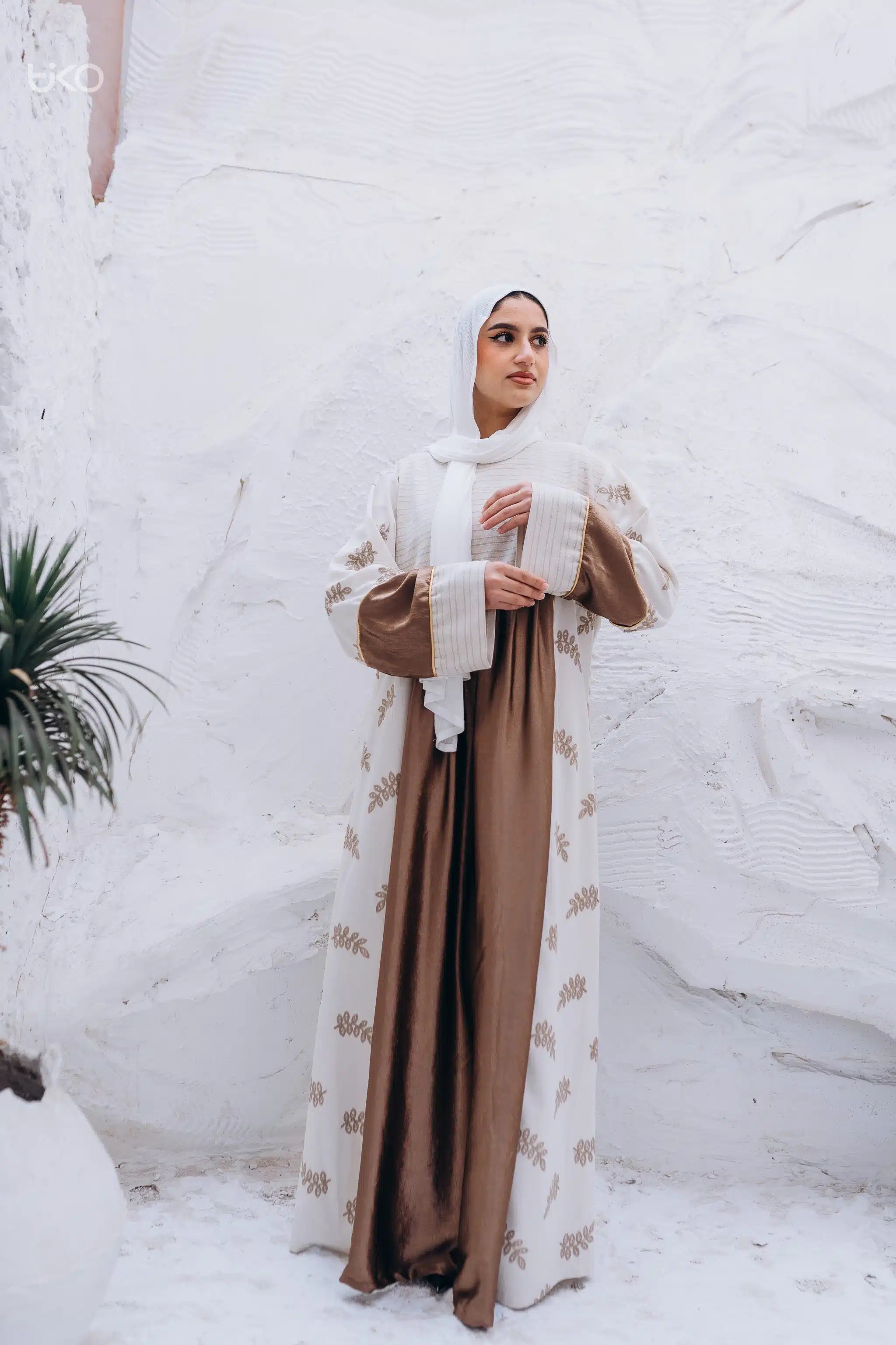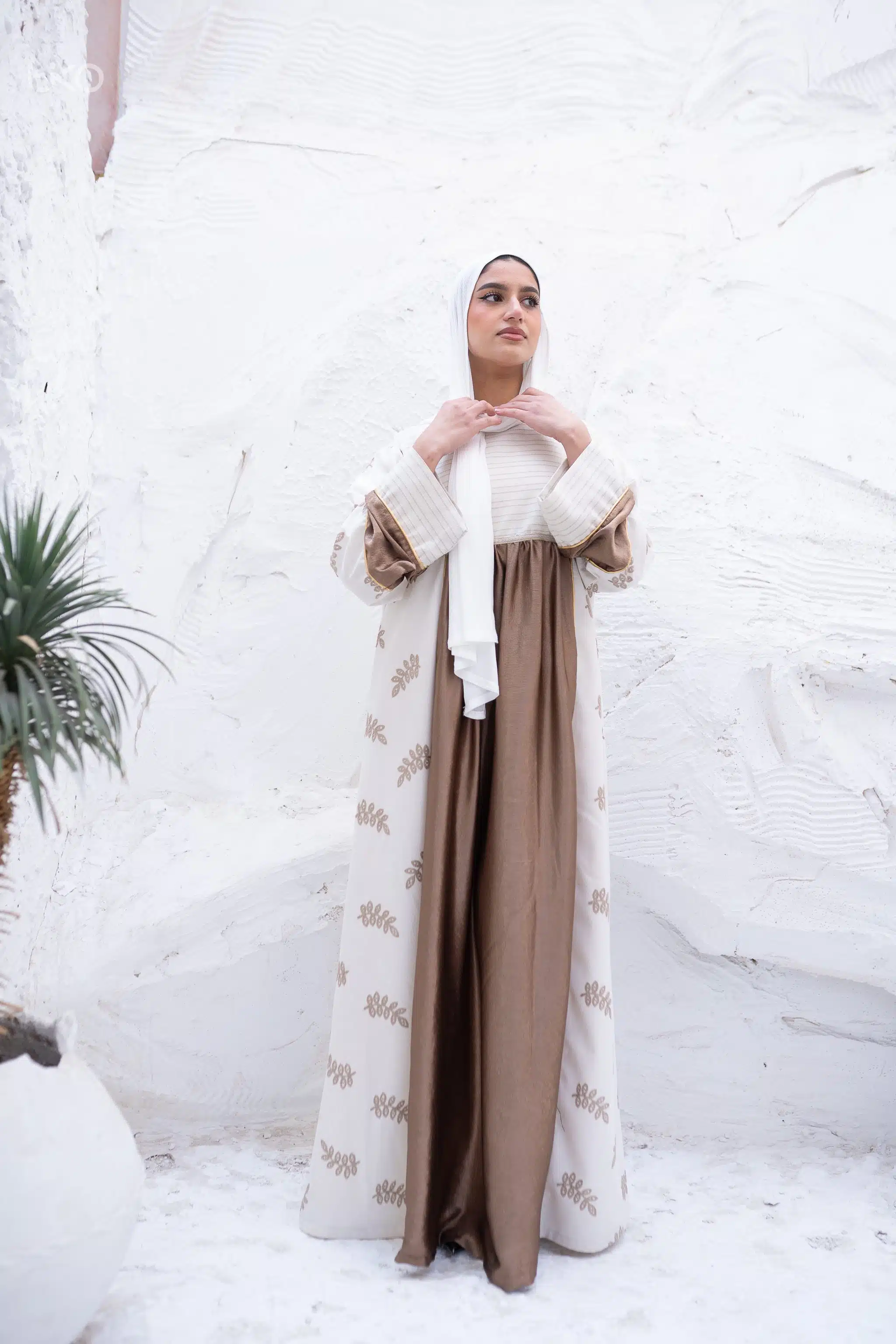 Natural Linen with Satin Organza Abaya