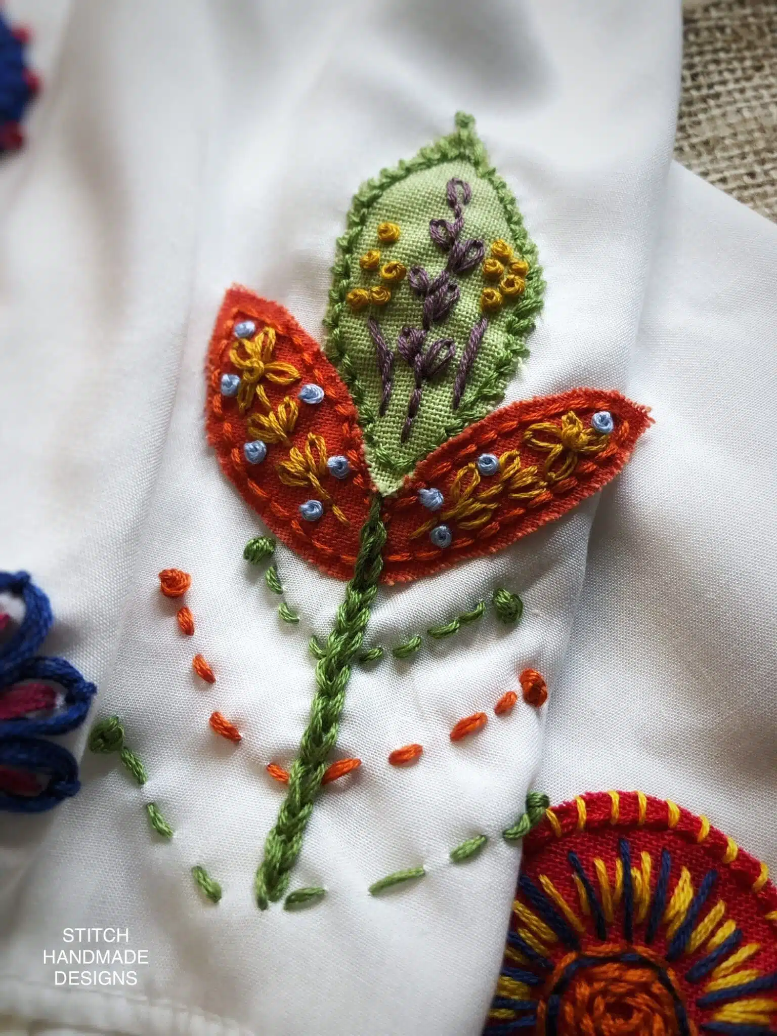 Colorful linens embroidered with vibrant threads on viscose scarf .