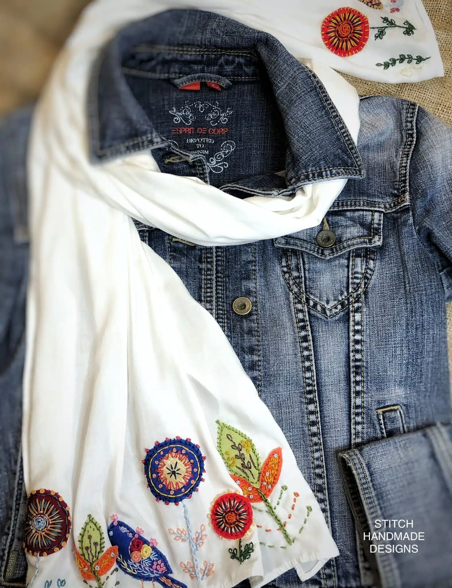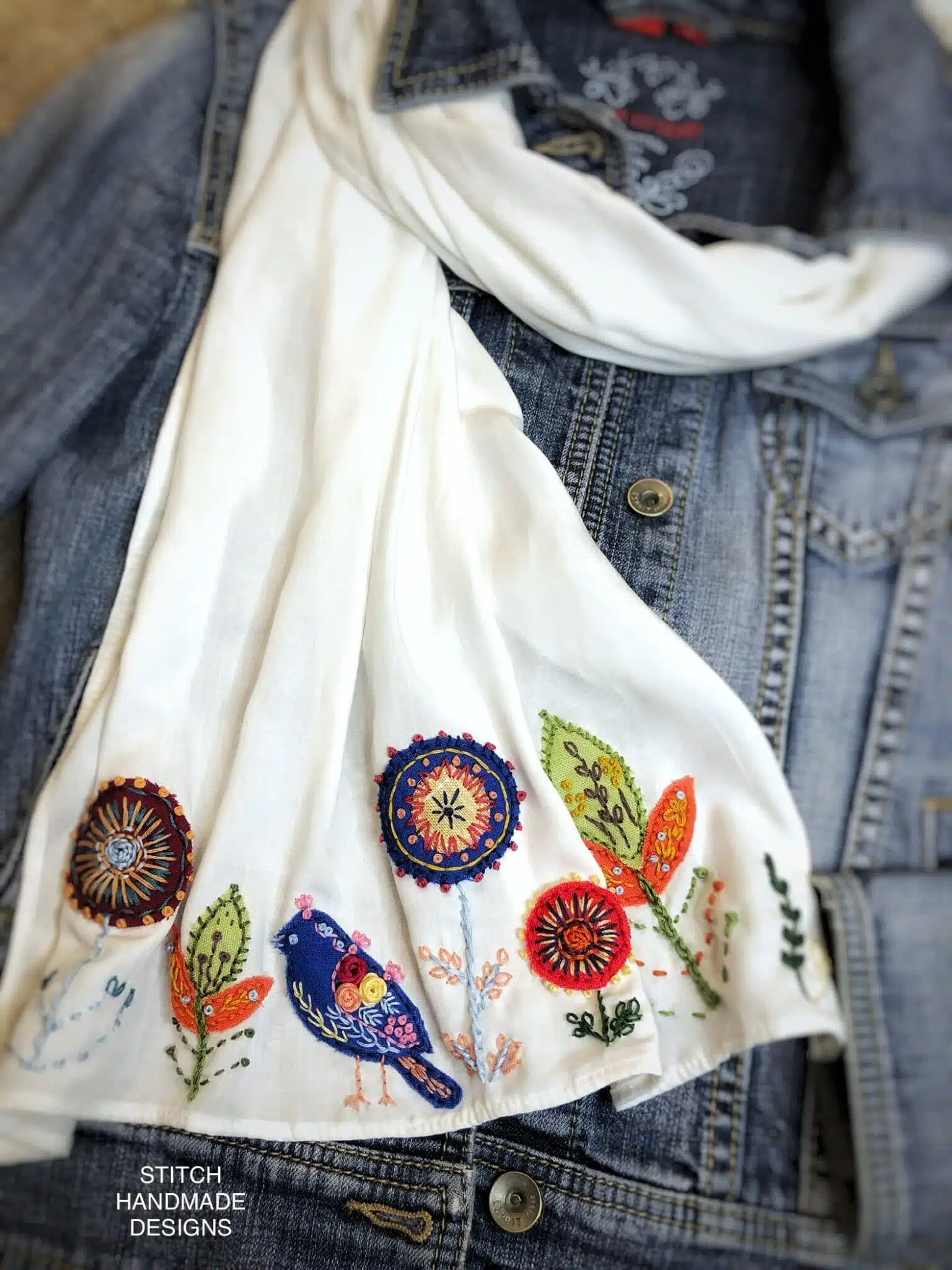 Appliqué embroidered  scarf ,