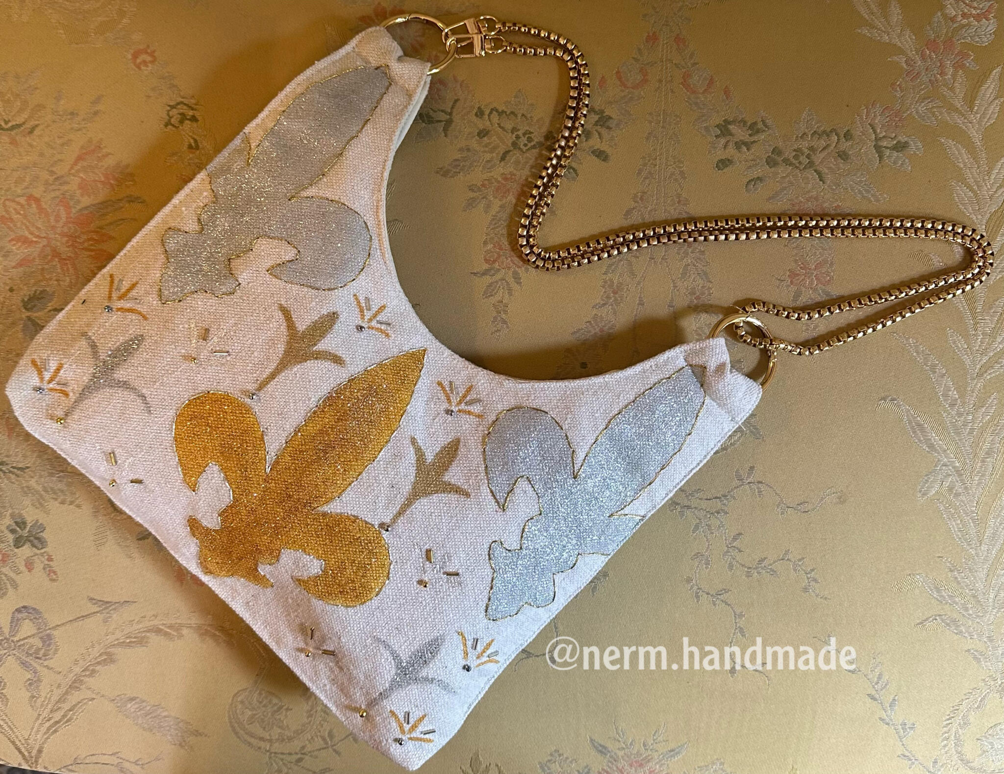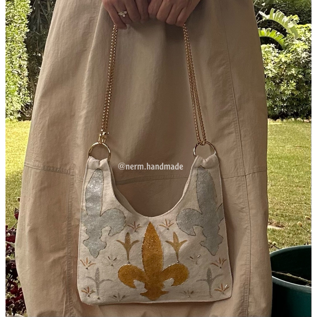 Hand painted & embroidered Shoulder & cross bag (adjustable chain)