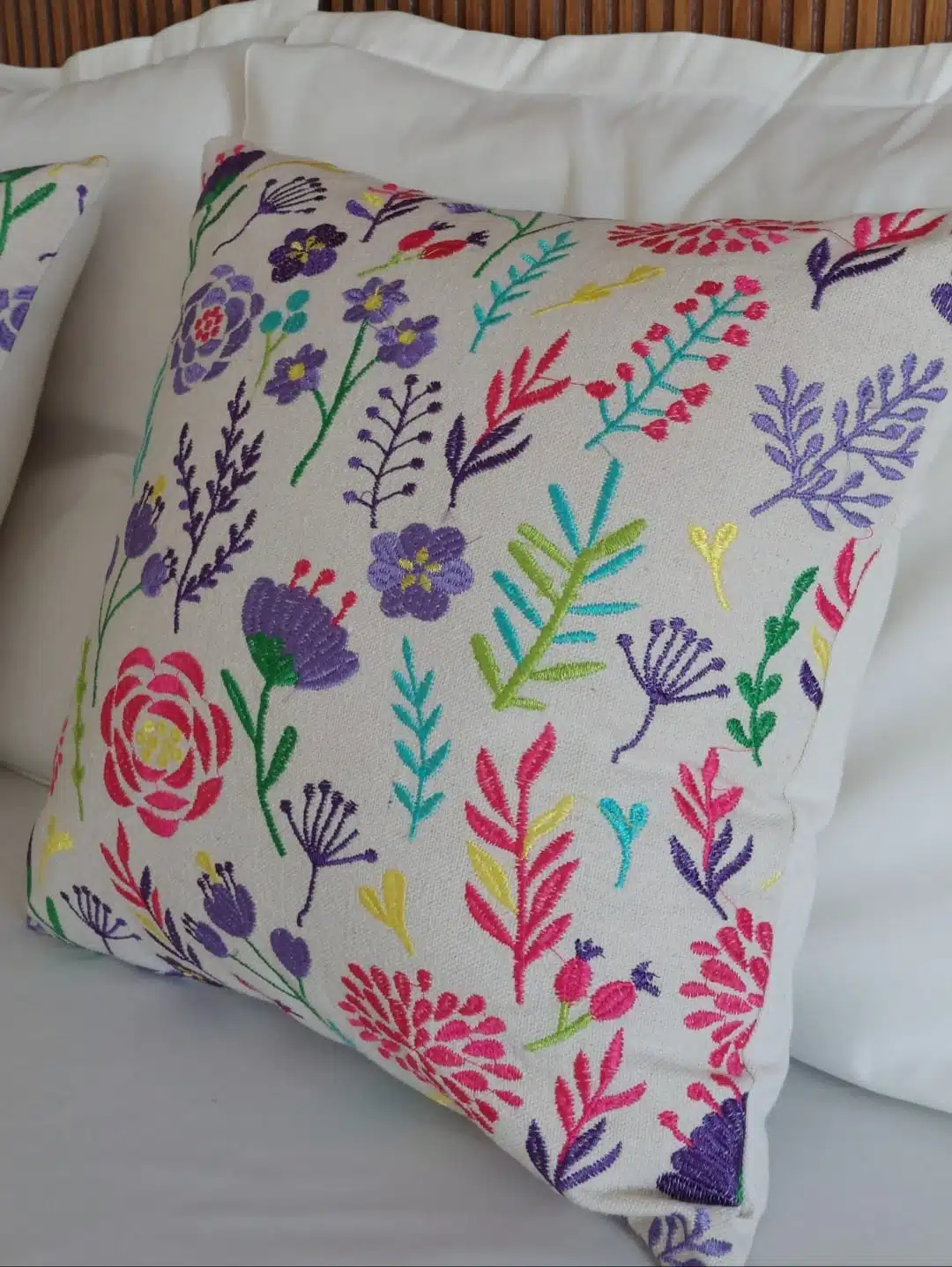 Machine embroidered cushion cover Size: 40*40 cm Plain back with a zip.