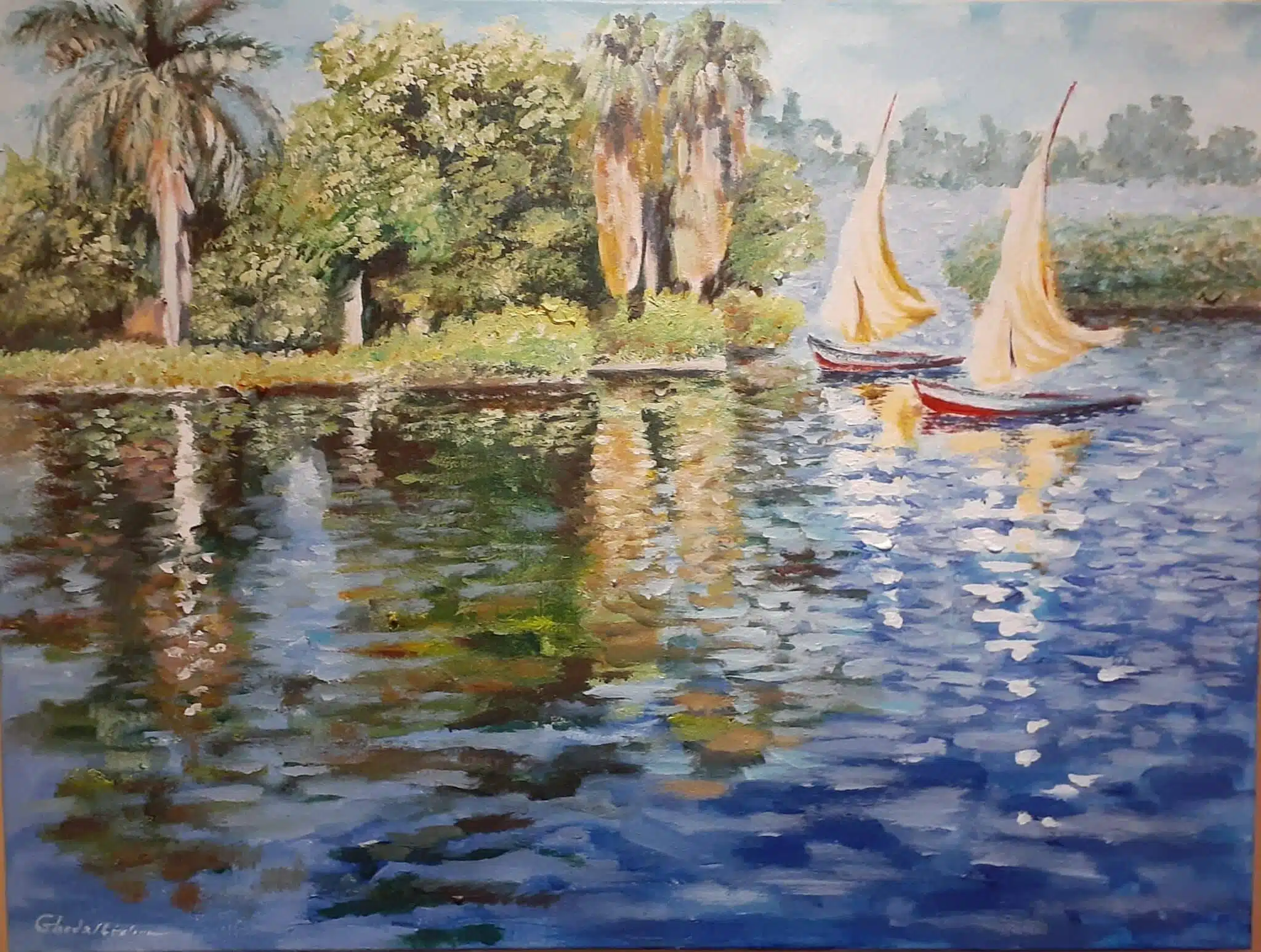 Hand painted by acrylic colours to represent the beauty of an area from amazing Nile river with deep beautiful colours 💙
