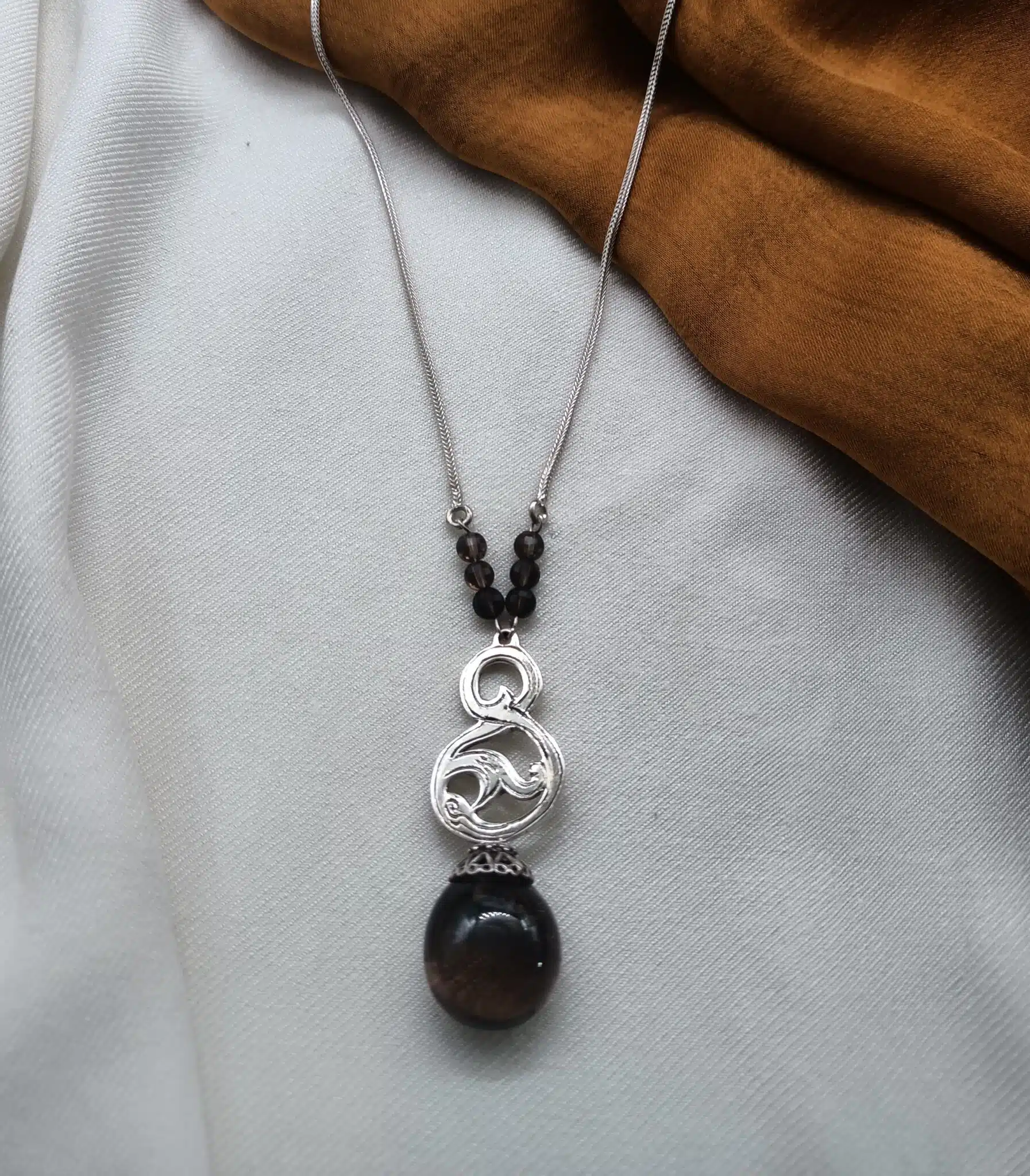 - قلادة مستلهمة من زخارف نباتية من الفضة الخالصة واحجار smoked Topaz