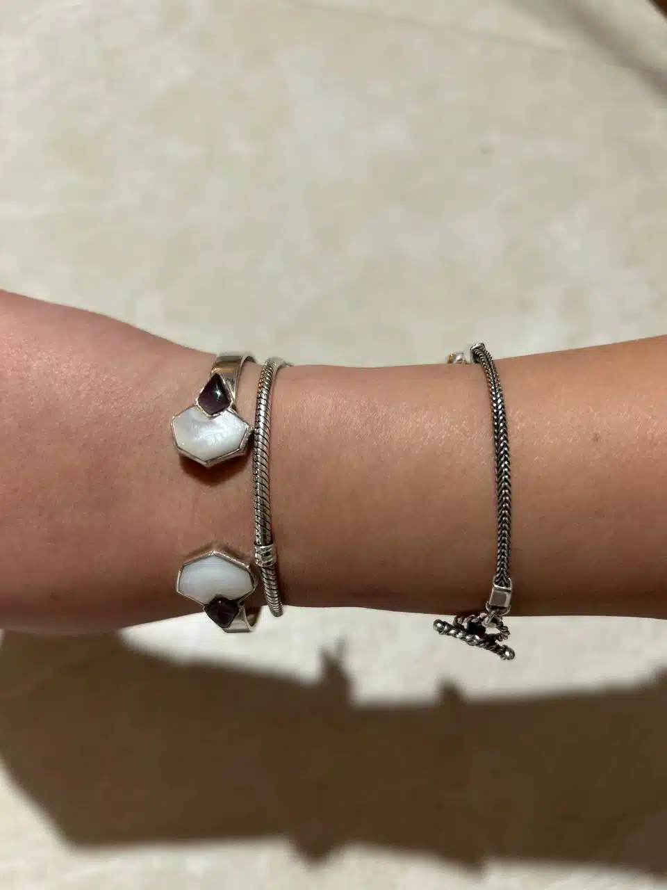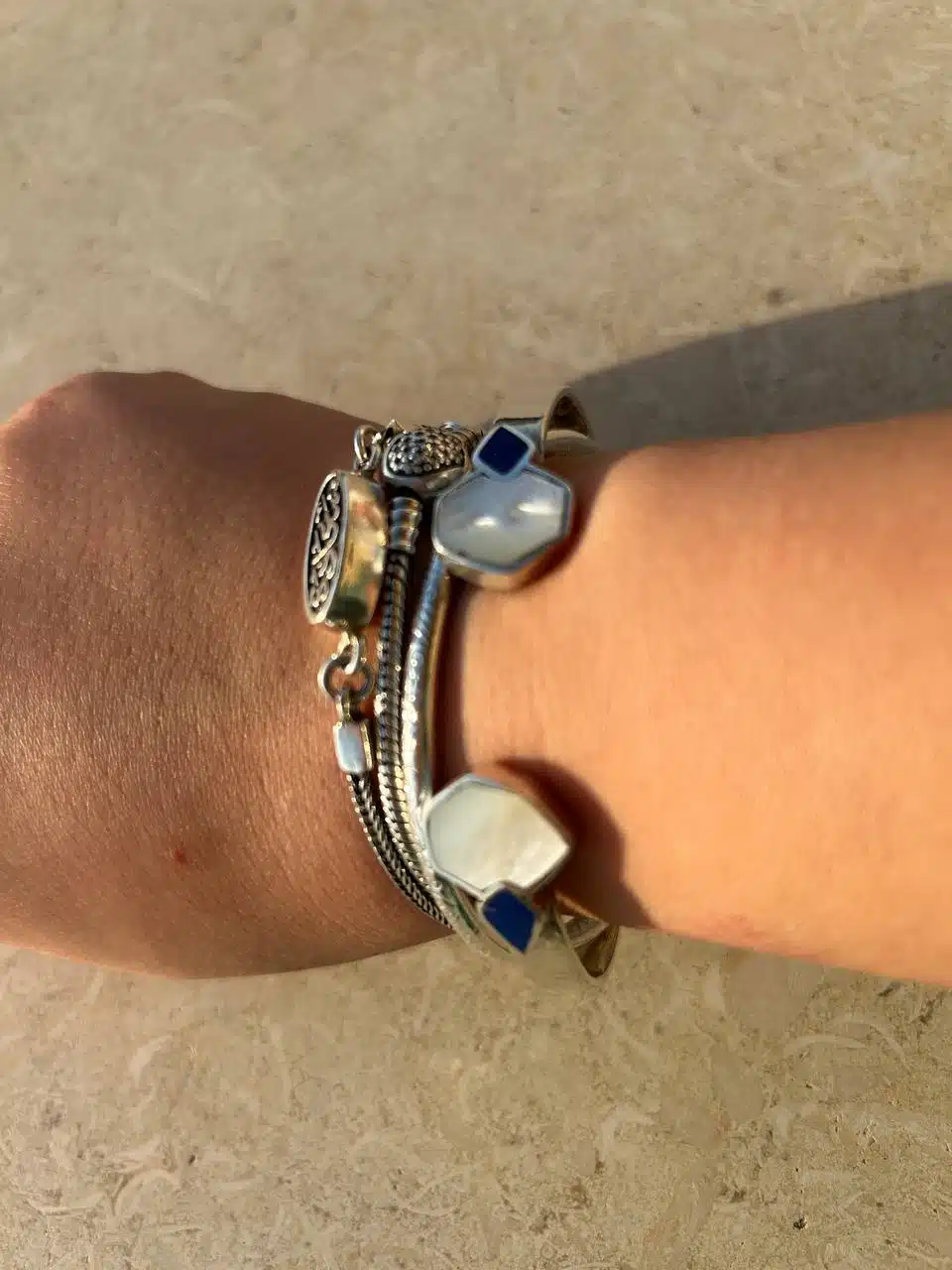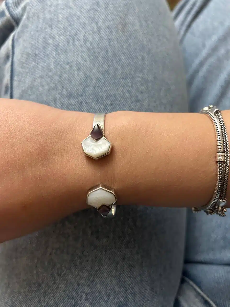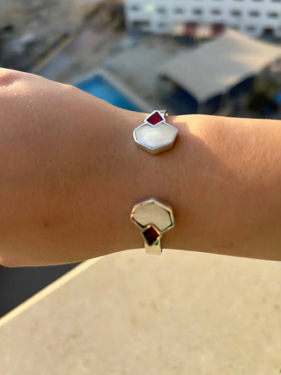 Islamic motive inspired cuff made in 925 silver mixed with colorful stones