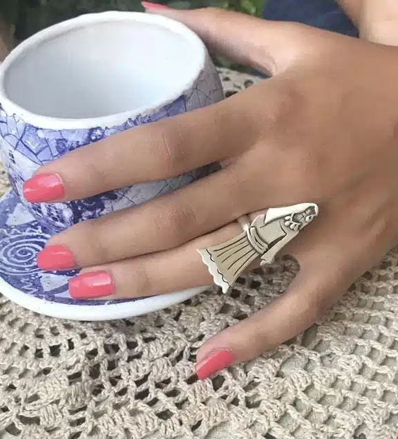 Sterling silver hand made ring featuring a Nubian girl
