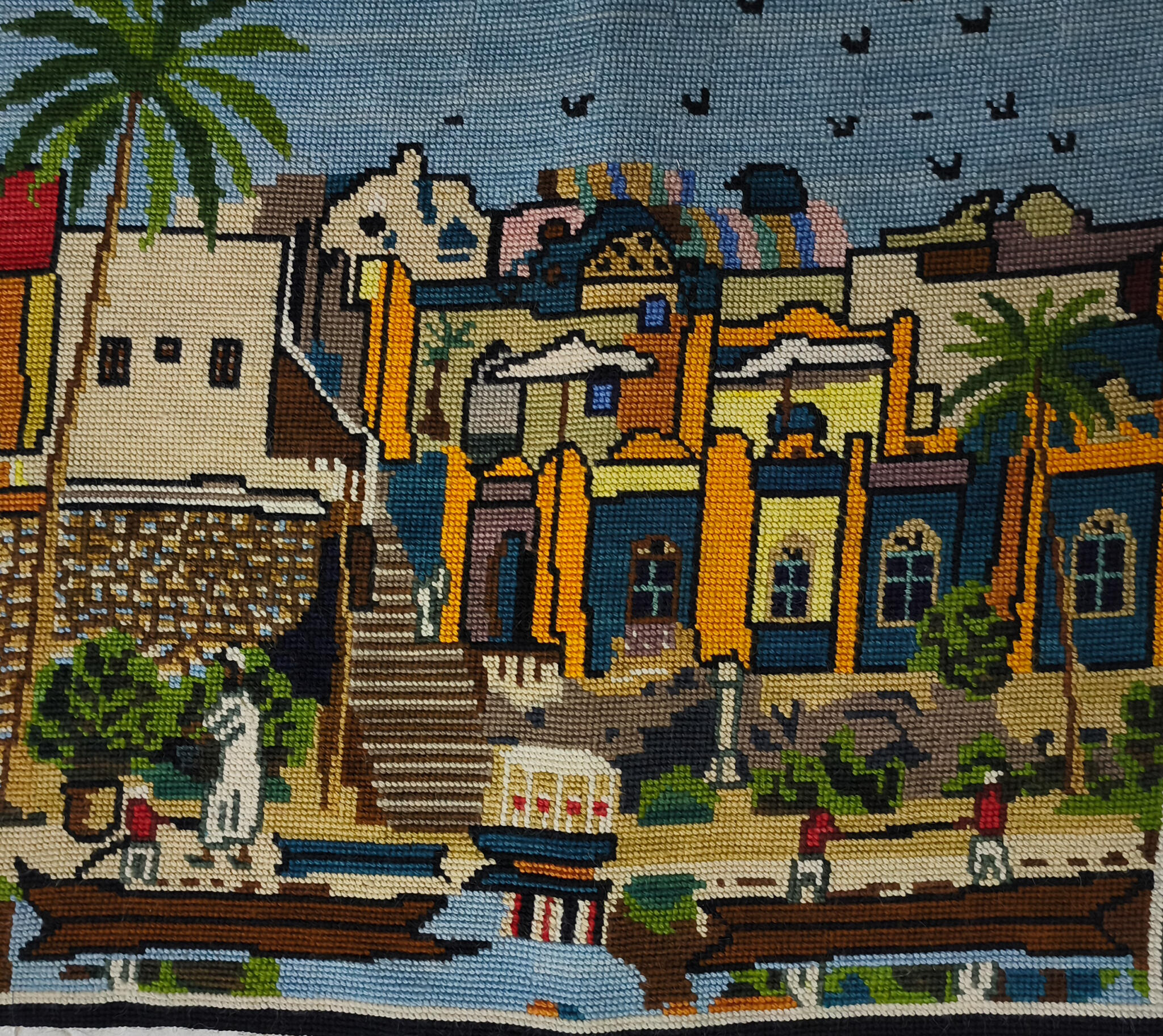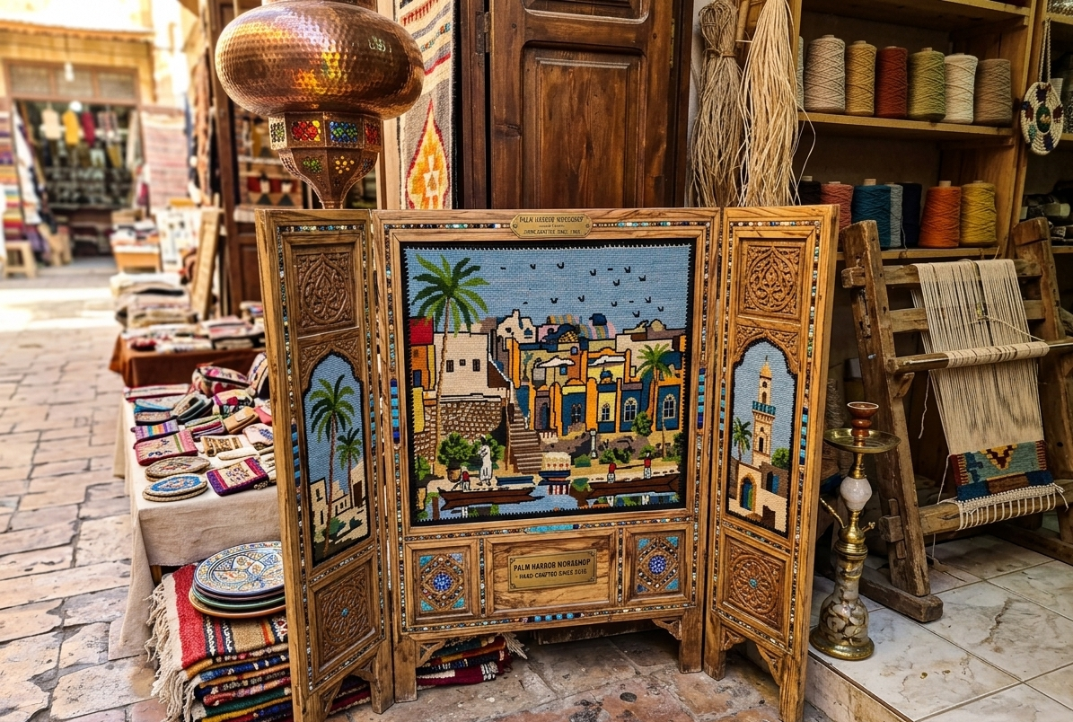 This piece features a rich, inspired color palette, showcasing golden architecture and deep blue facades set against a serene sky. Perfect for those looking to add a soulful, worldly narrative to their home decor.