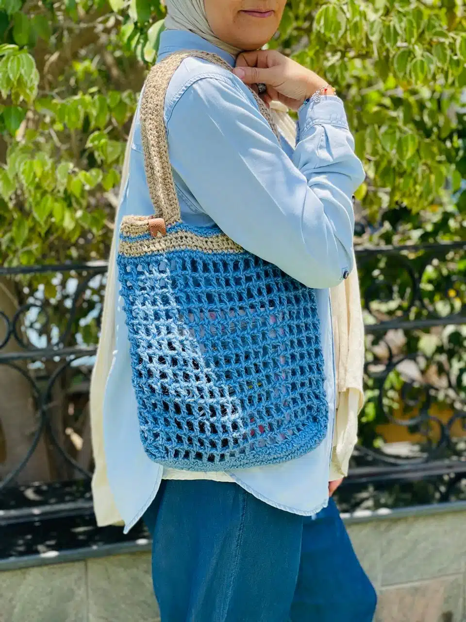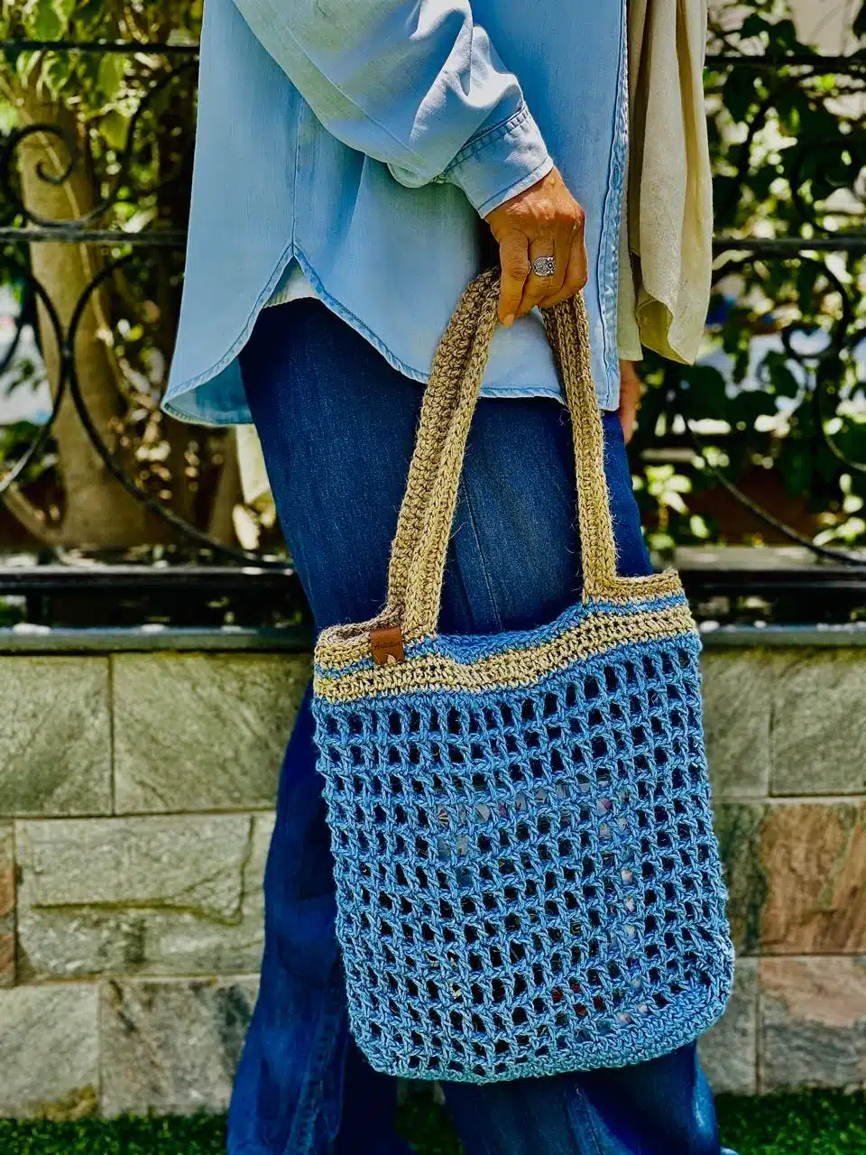 Cool and calming, this handcrafted tote features deep blue tones balanced with natural beige for a refreshing, coastal-inspired look. Spacious, breathable, and effortlessly stylish…your perfect companion for everyday adventures or seaside getaways.