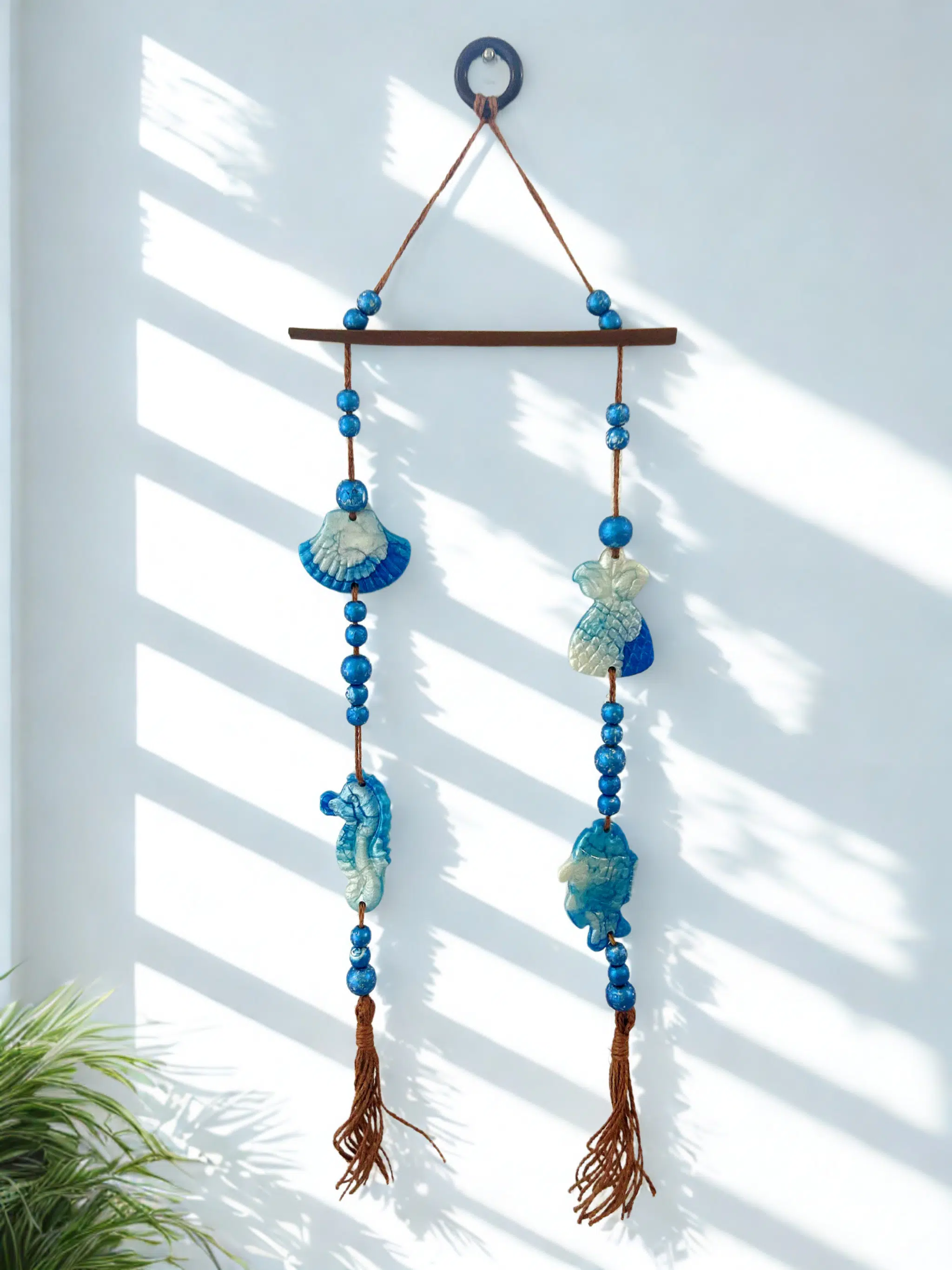 A one-of-a-kind boho-style wall art blending handcrafted resin elements with 100% cotton macramé.