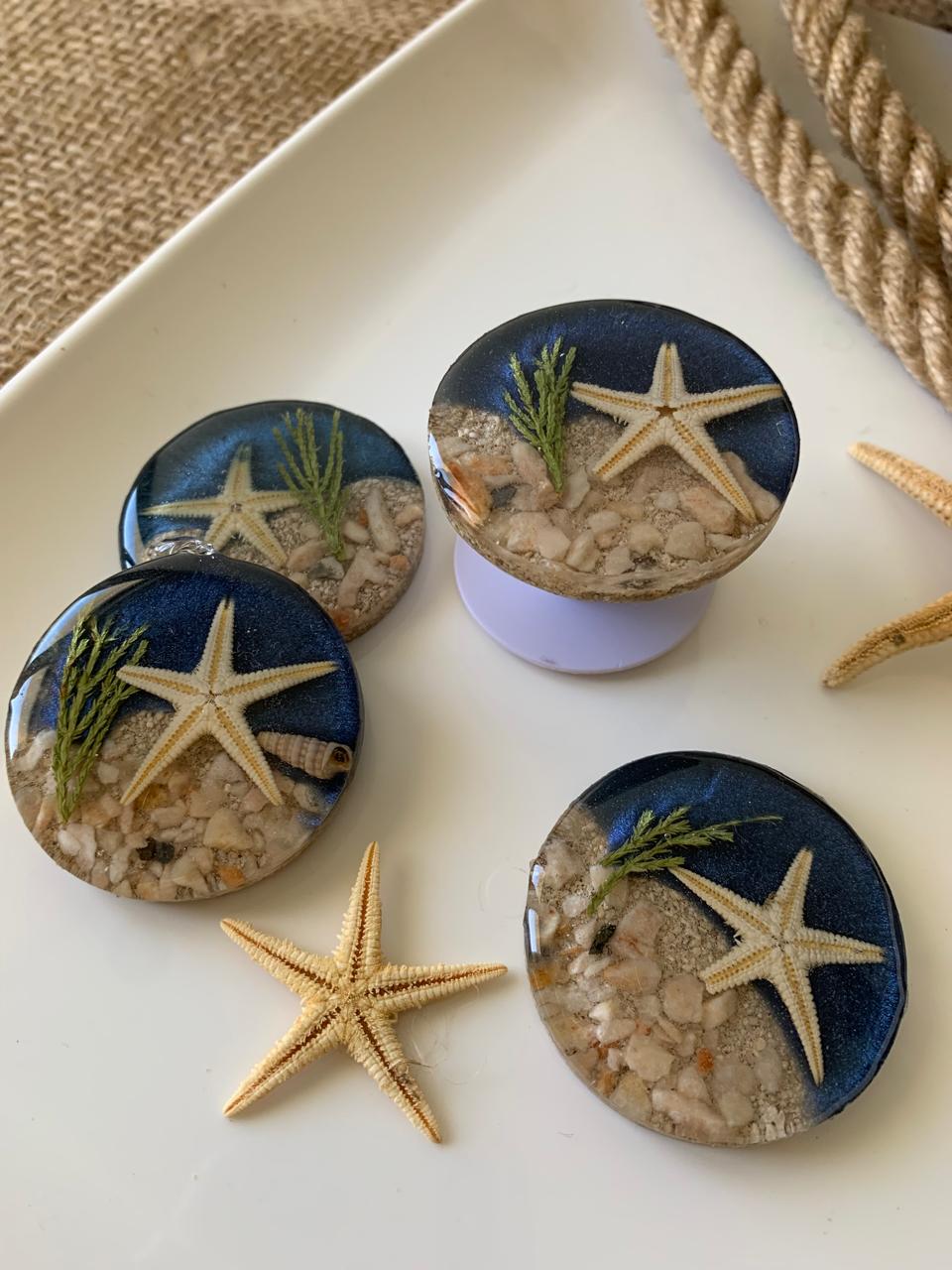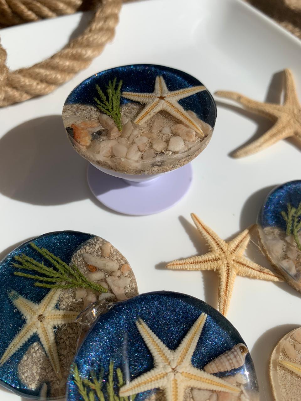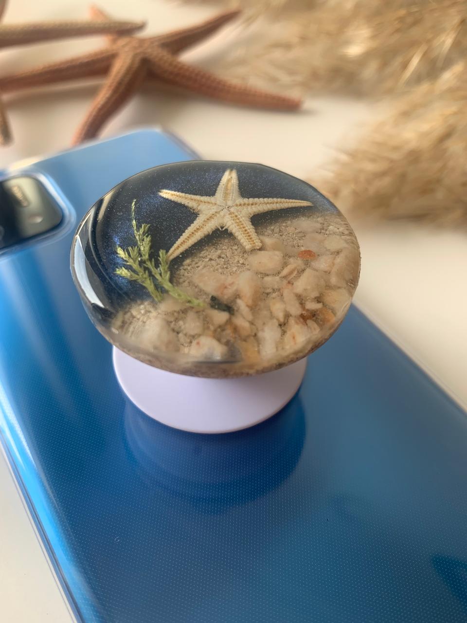 Capture the raw beauty of the ocean with this handcrafted pop socket, designed to mirror a tranquil shoreline in miniature form. This is not just ocean-inspired; it is made from the sea itself.
