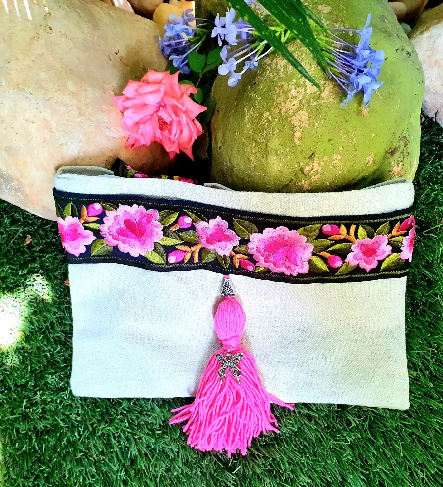 Handmade embroidery clutche with metal coins 30×20 cm.