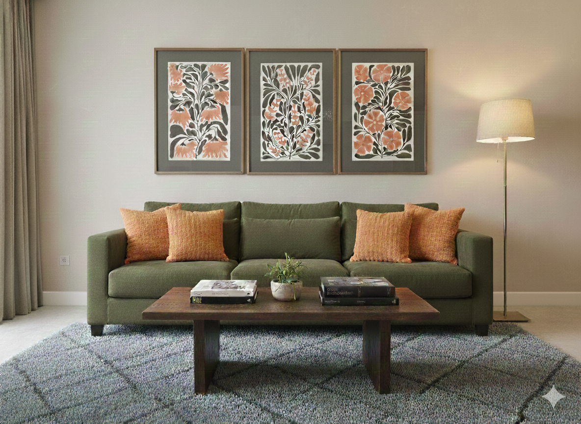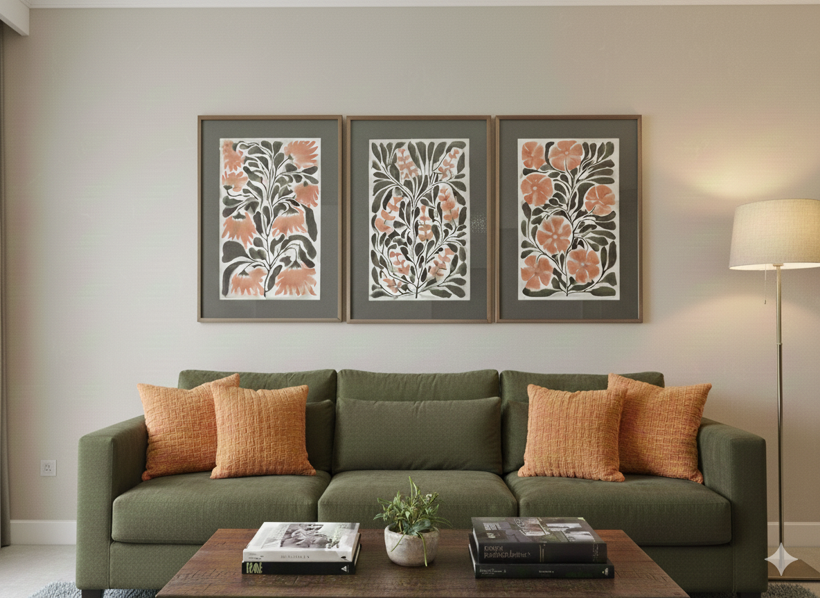Introducing the Olive Bloom Triptych—a striking three-piece collection designed to infuse your space with warmth and graphic sophistication. These stylized botanical prints feature a vibrant, hand-painted texture in terracotta and coral hues, beautifully set against a crisp background and framed in elegant, contrasting wood. Perfect for hanging above a sofa, sideboard, or mantel, the Olive Bloom series instantly elevates any room, providing a balanced, sophisticated focal point with a timeless, natural appeal. It’s not just art; it’s a statement of comfort and curated style.