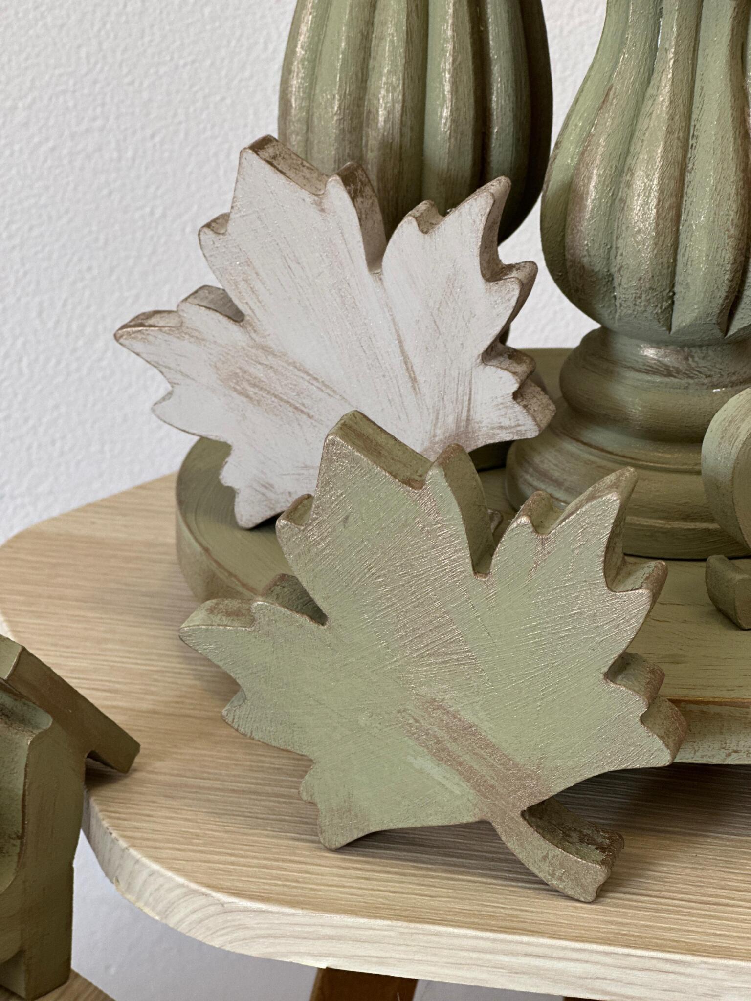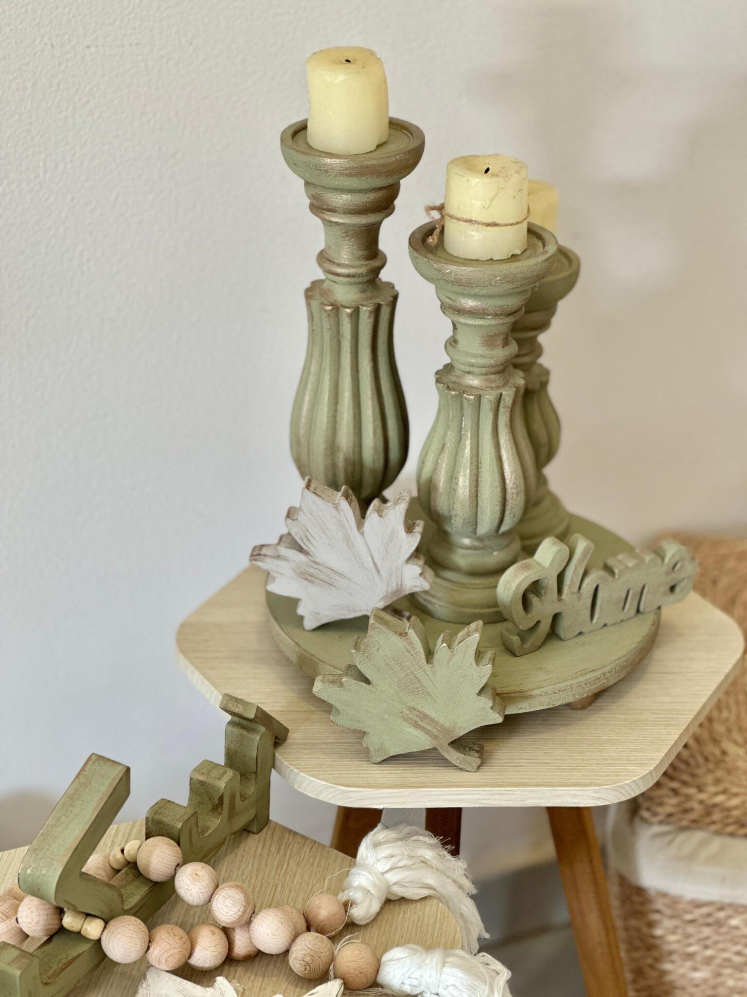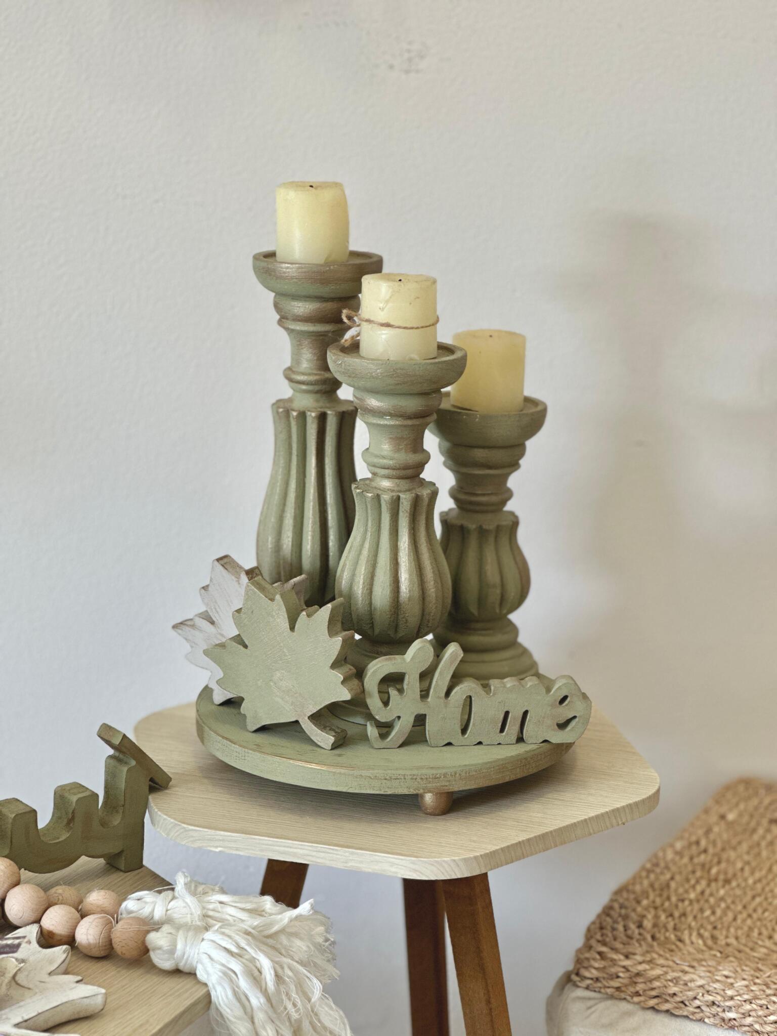 طقم شمعدانات خشب زان هاند ميد بدرجات زيتوني مطفّي مع قاعدة دائرية