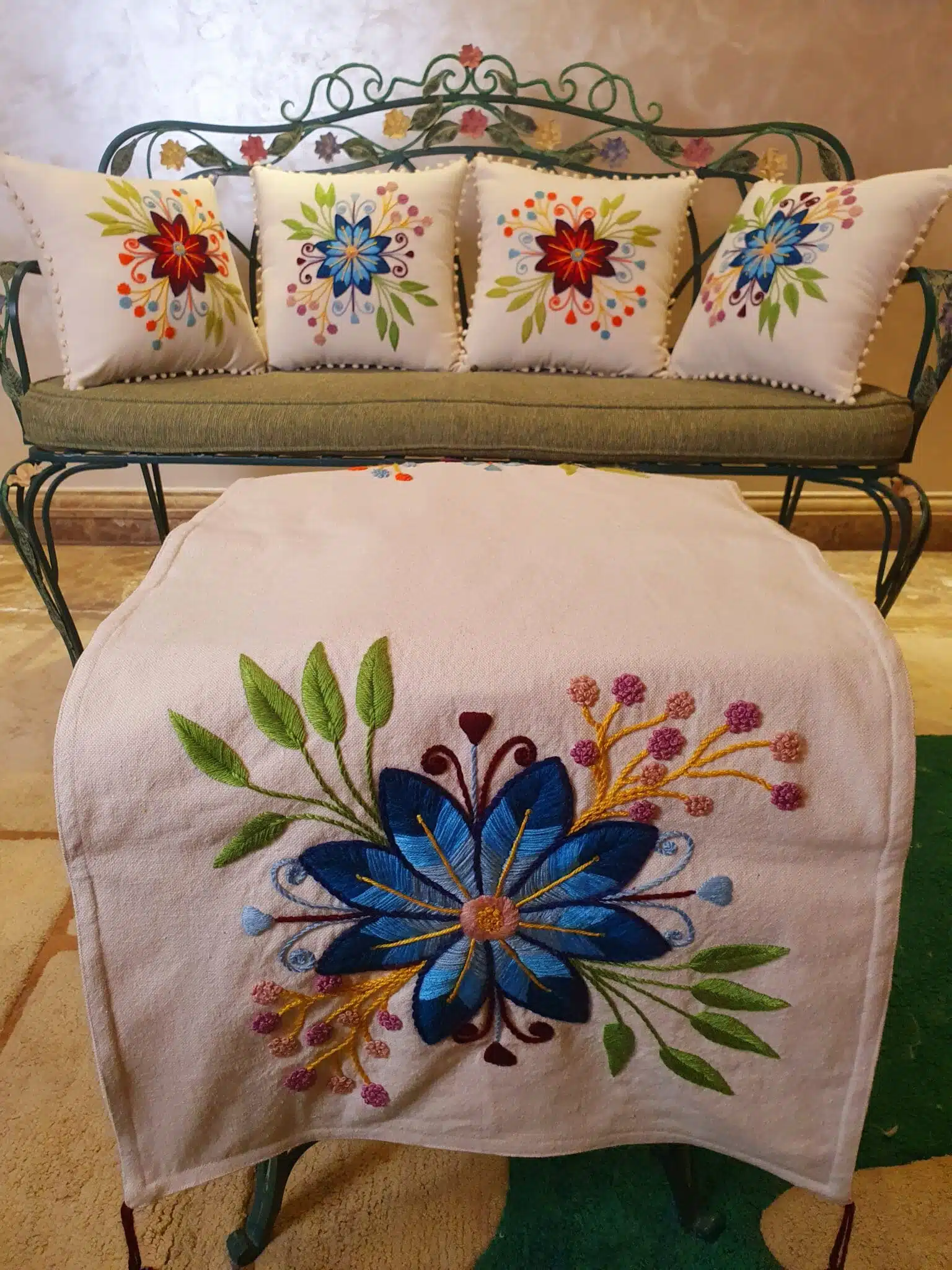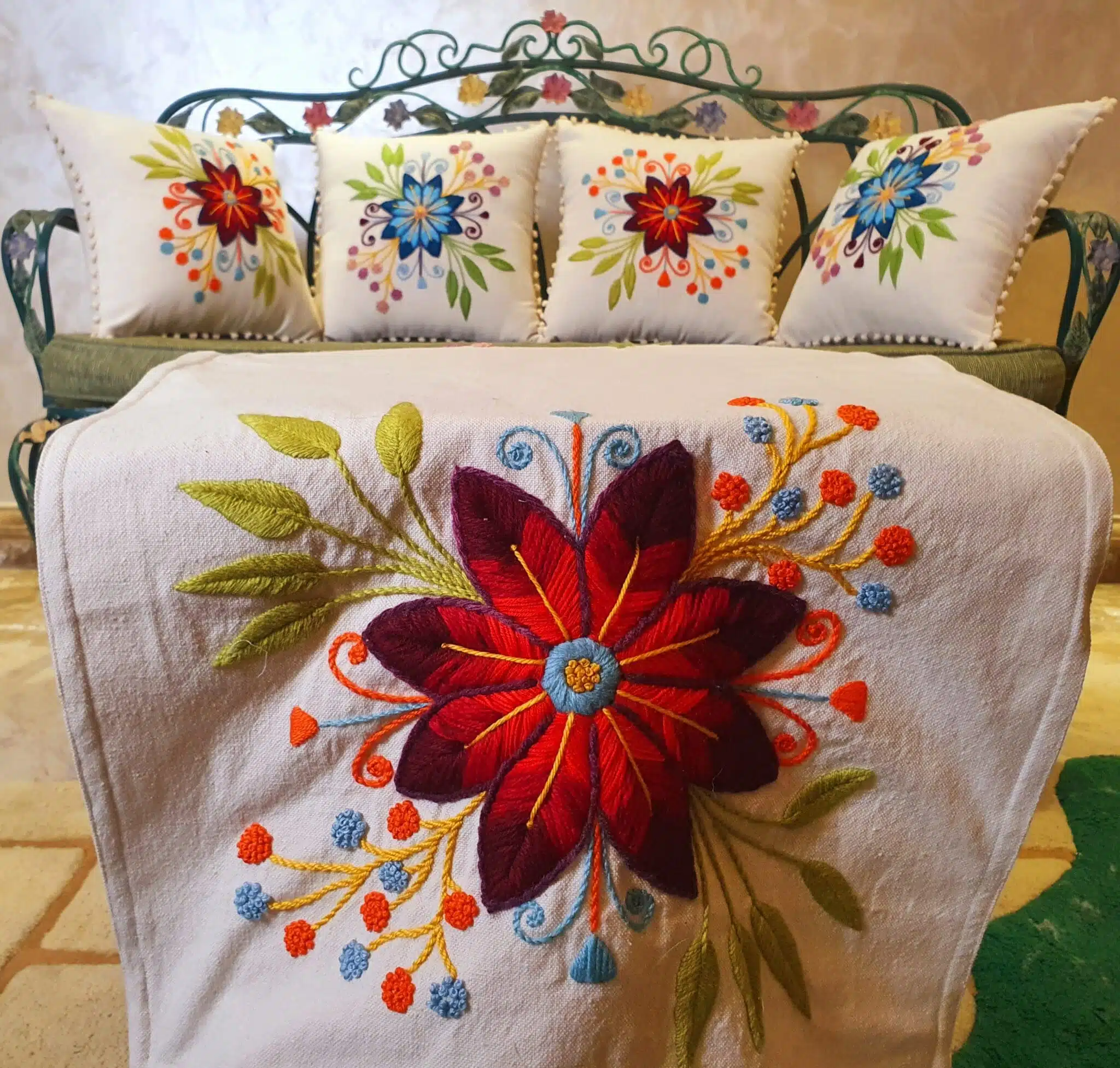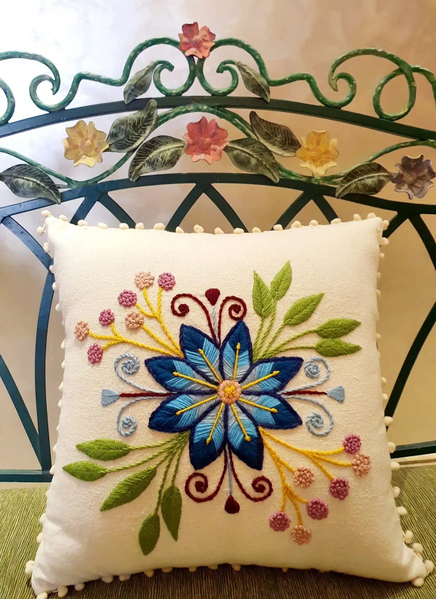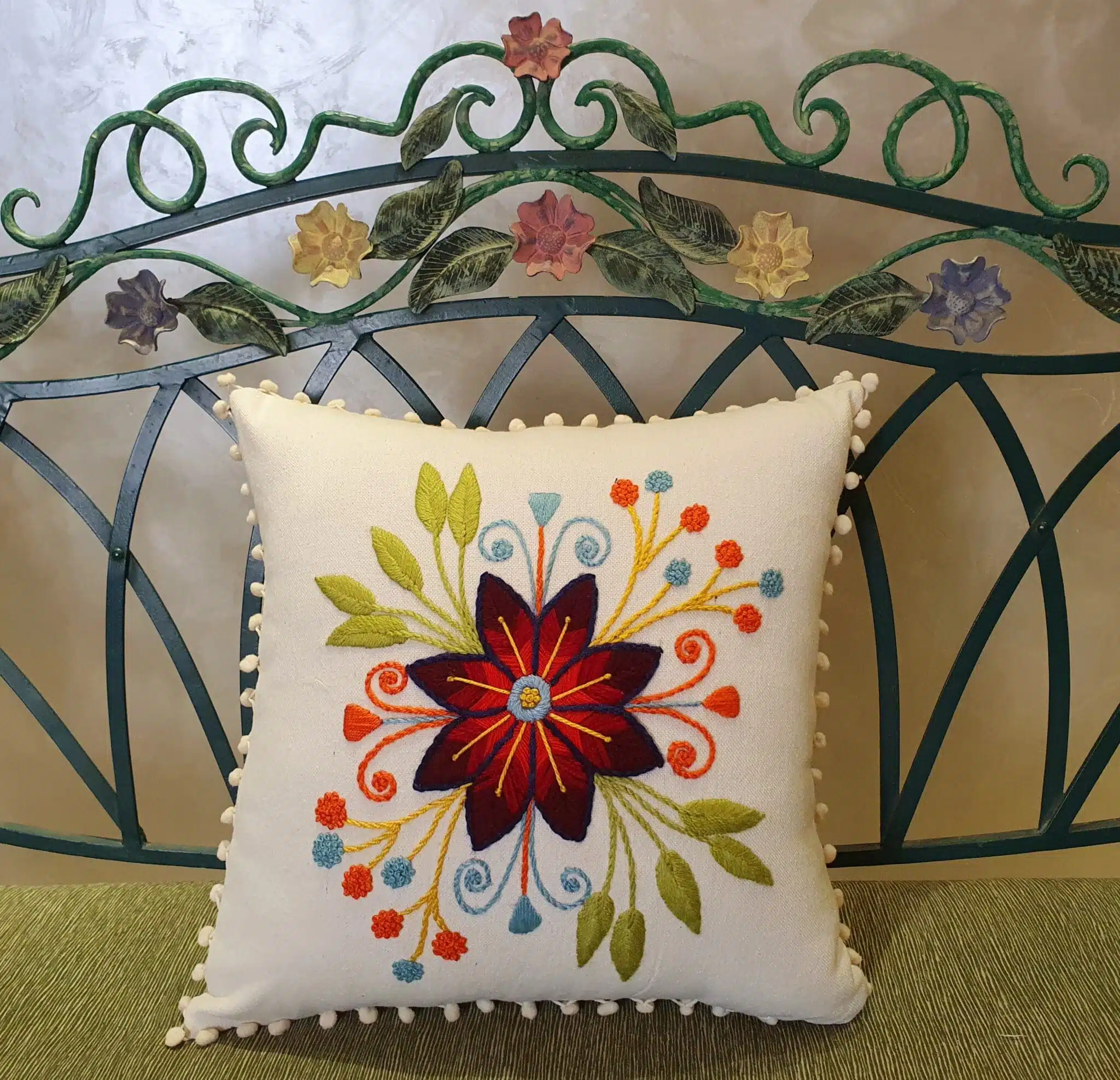 Cushion designed in one star flower customized with client request colors.
