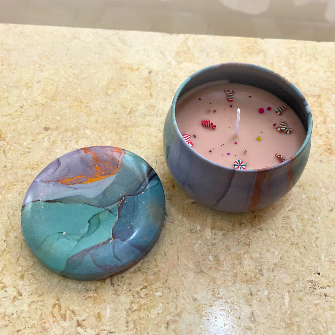 A refreshing orange-scented candle poured into a sleek stainless steel jar. With a weight of 50 grams, this candle adds a fresh citrus aroma and a modern touch to any space. Available in multiple colors – select your favorite color at checkout.