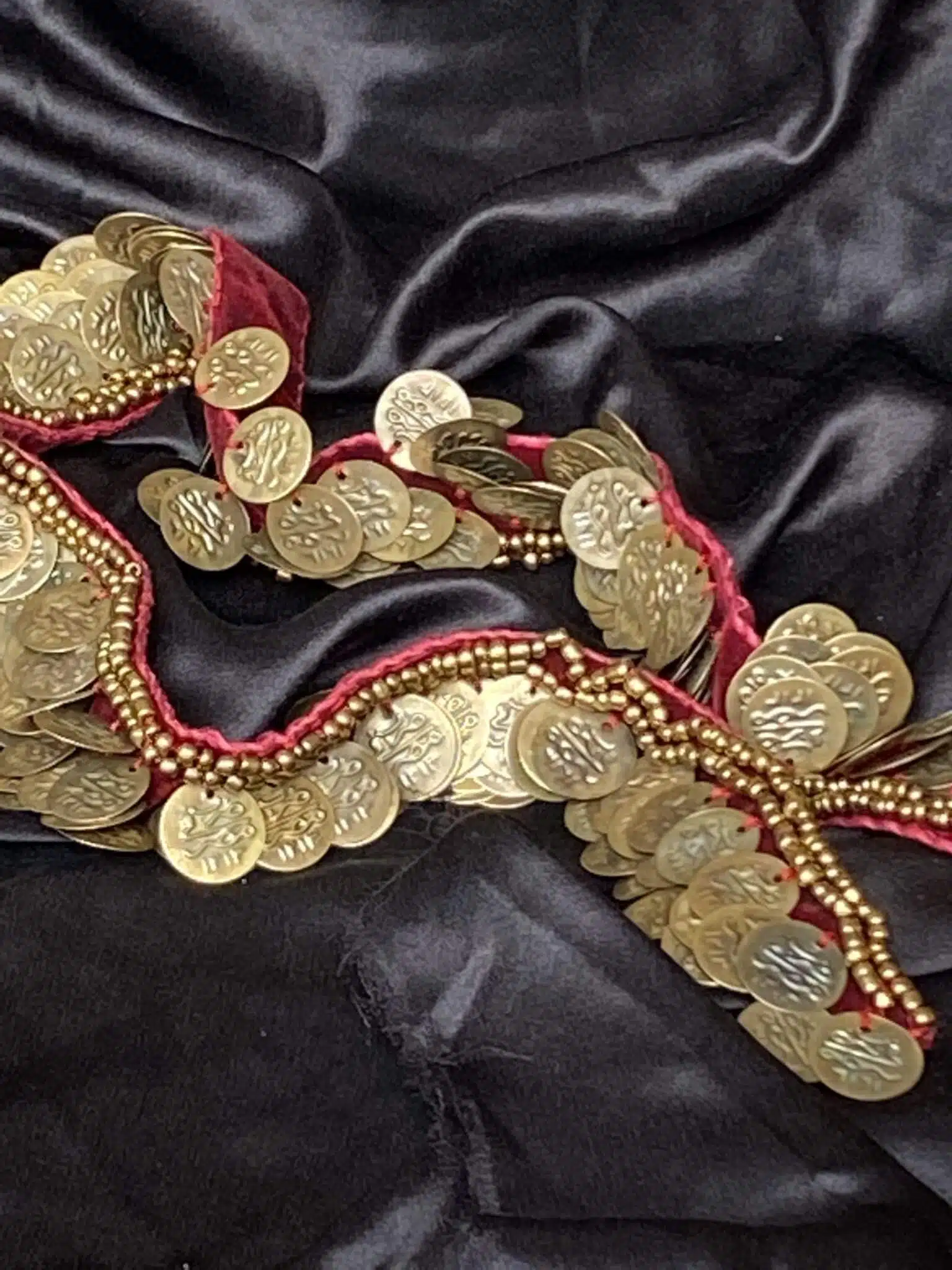 Hand-embroidered with beads and coins readingضرب في مصر ١٢١٣