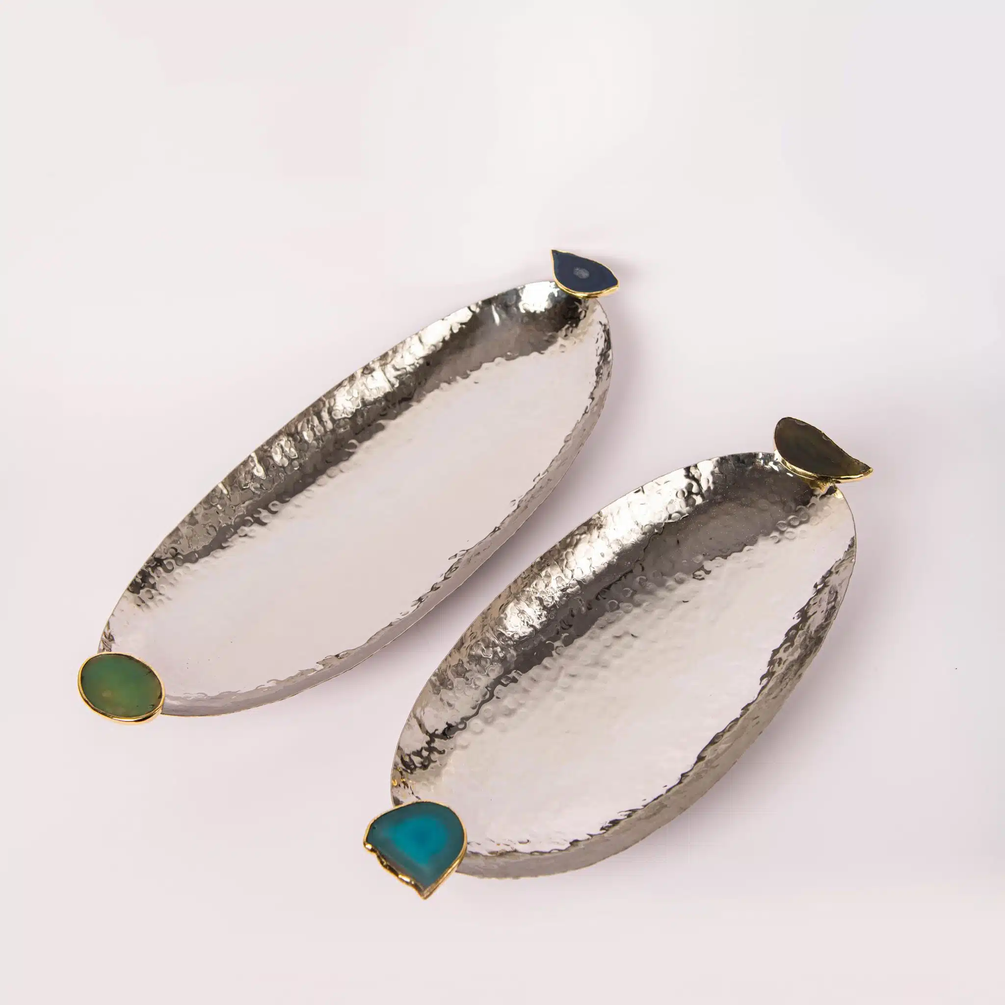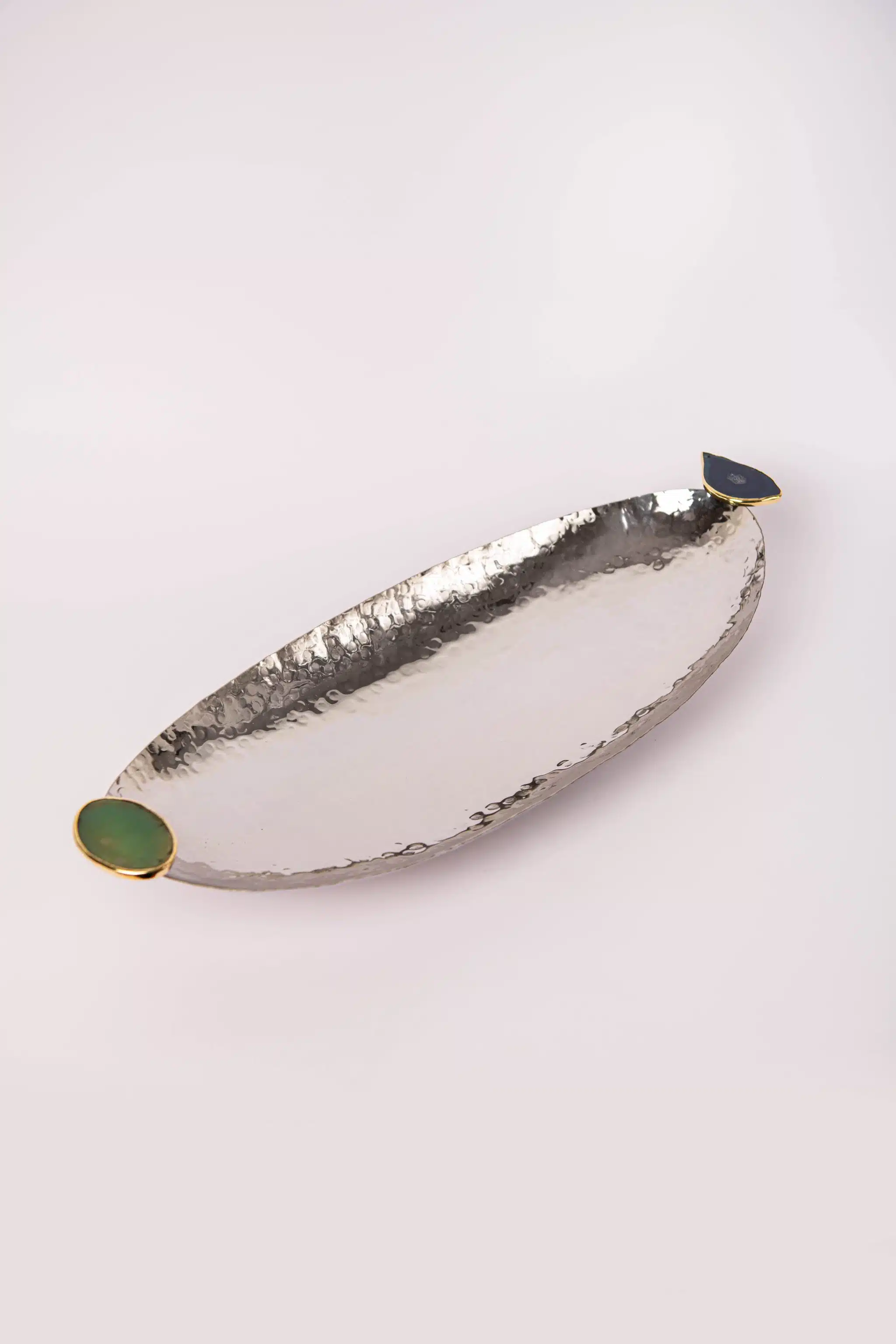Oval stainless handmade plate with agate stone or handmade copper accessories