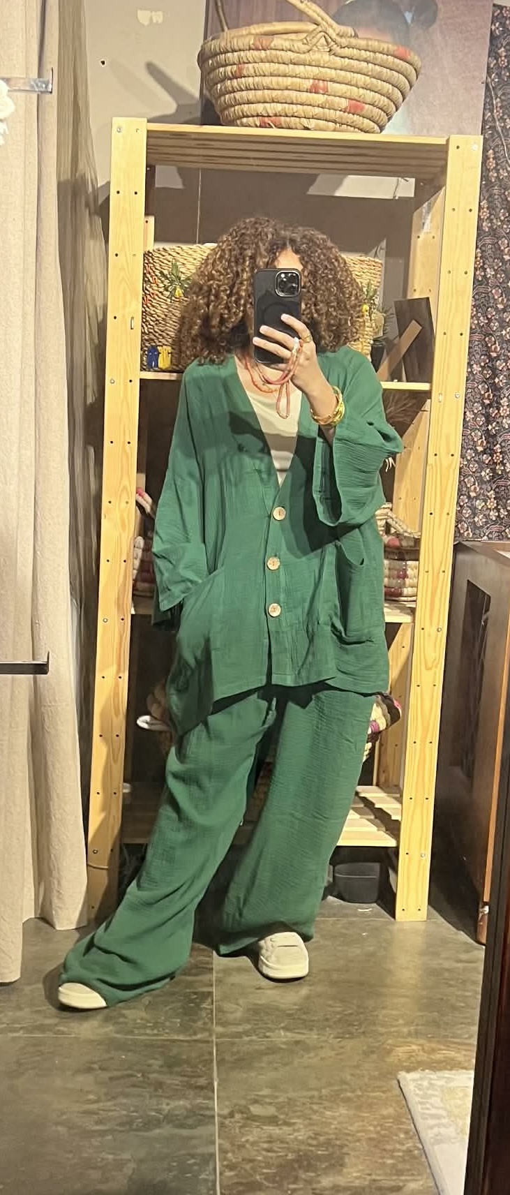 كارديجان كرينكل قطن او كتان ستايل بوهيمي حر يمكن تنسيقه مع البنطلون الواسع من متجرنا